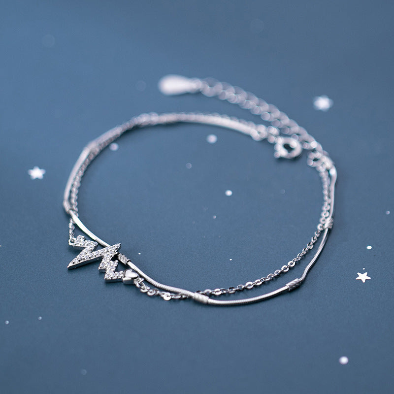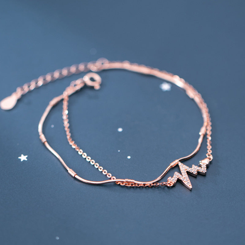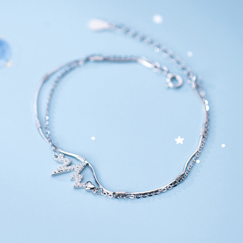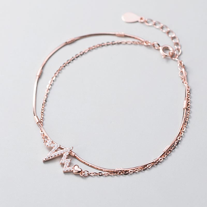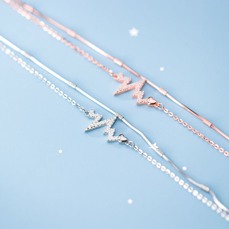Love Heart Diamond Electrocardiogram S925 Silver Bracelet
