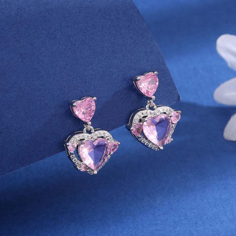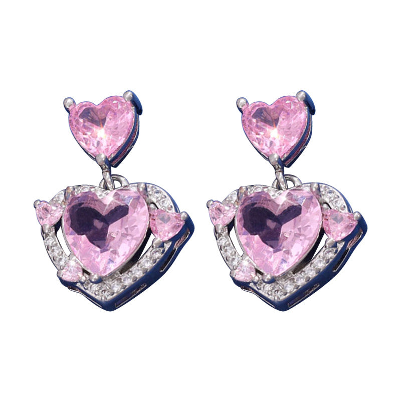 Micro Inlaid Zircon Hollow Heart Ear Studs Female