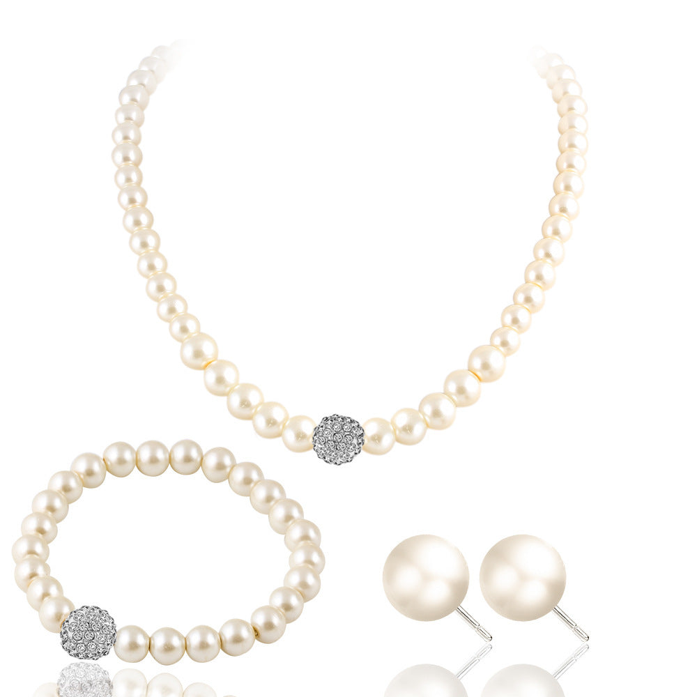 The new bride sweater chain necklace jewelry suite all-match diamond pearl necklace earrings bracelet set