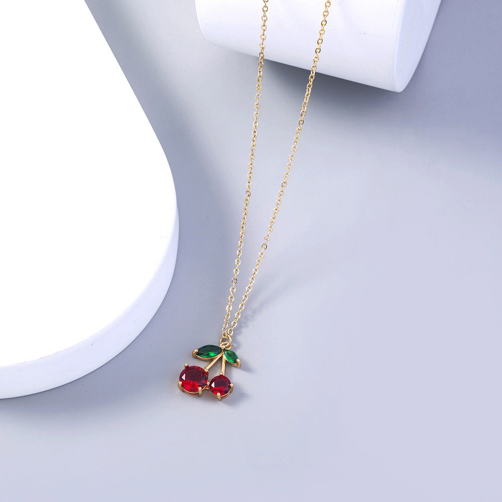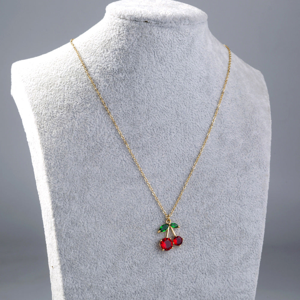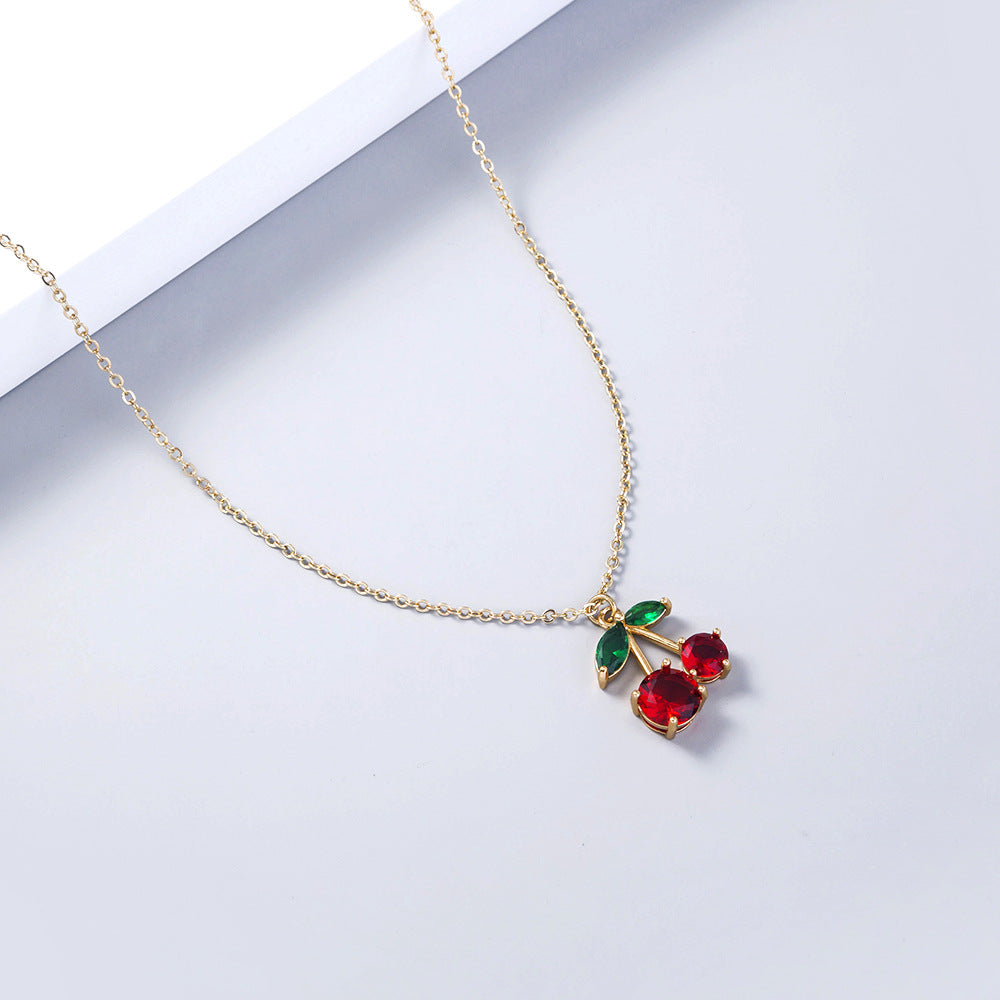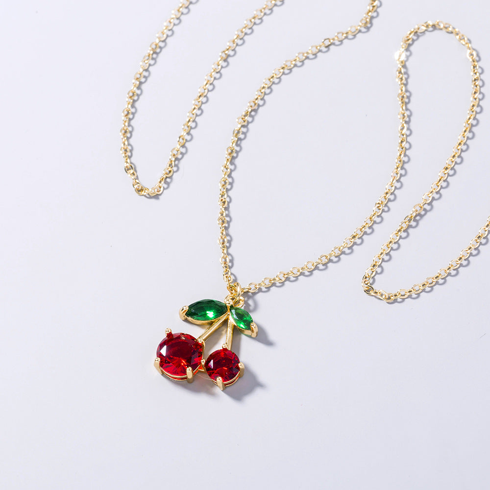 Trendy Red Zircon Cherry fruit necklace pendant necklace