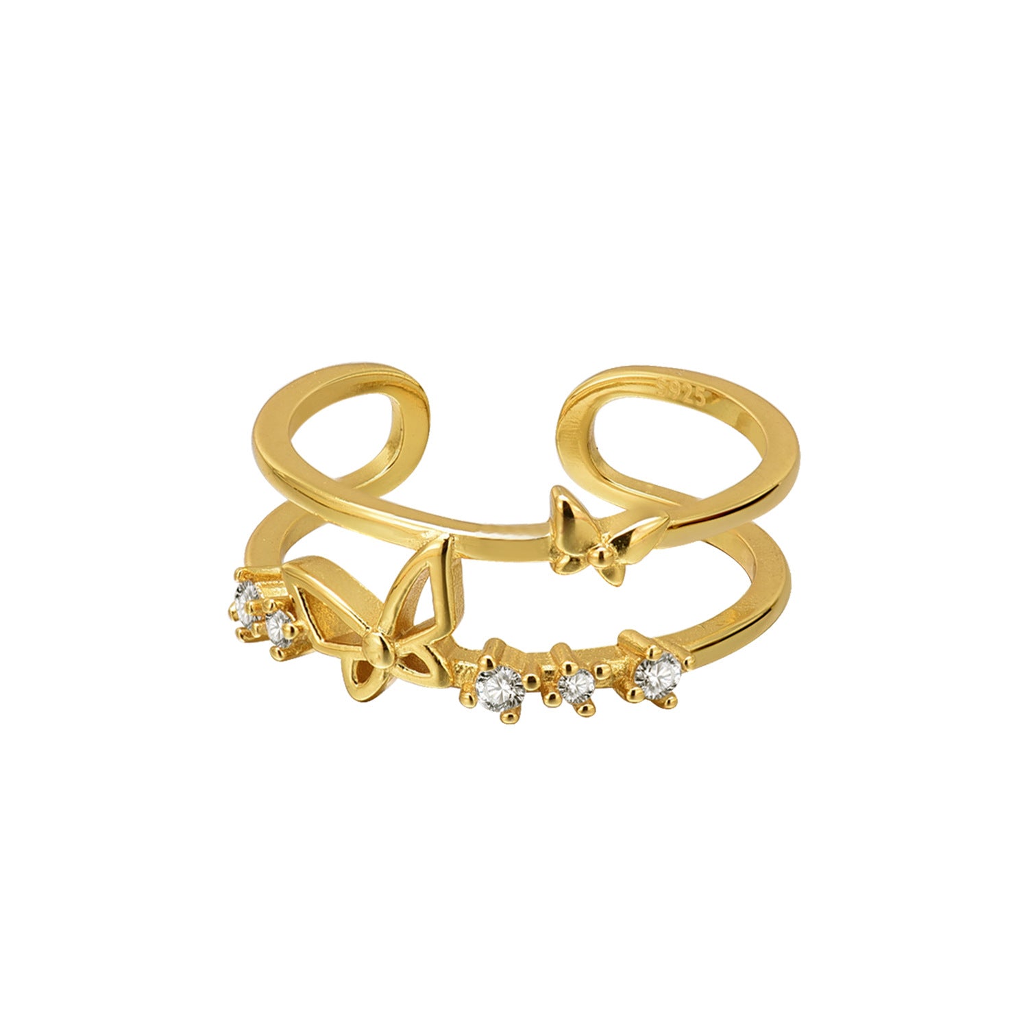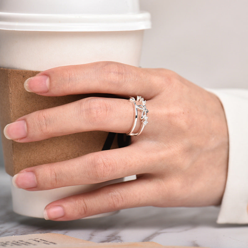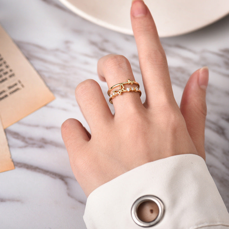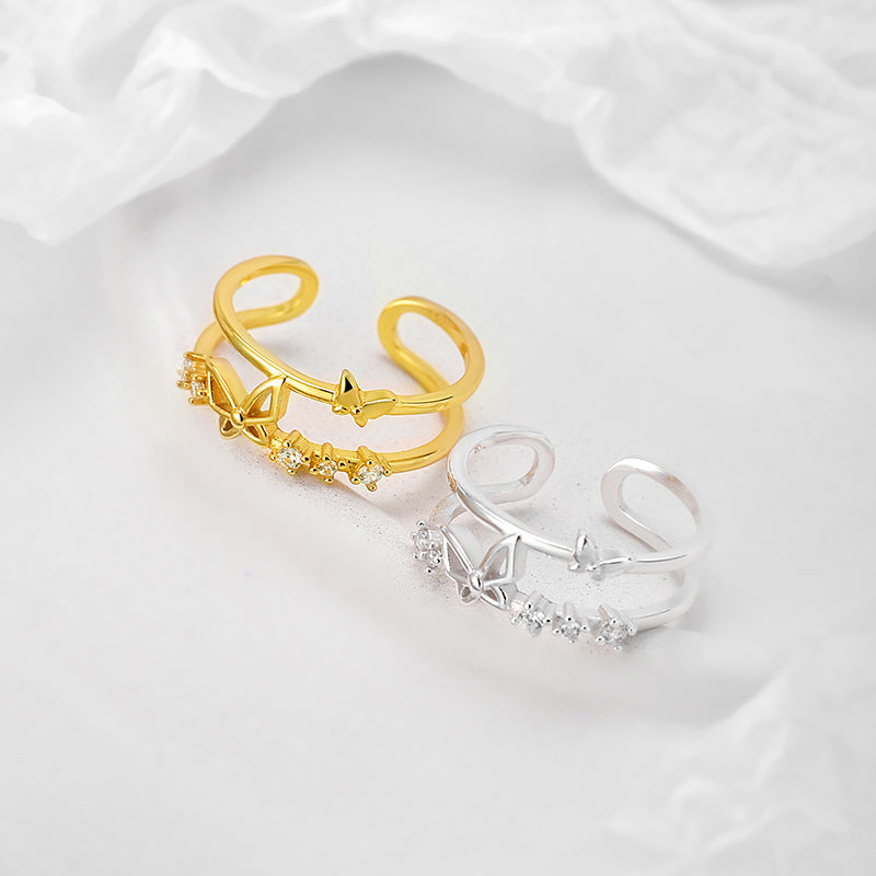 925 Silver Micro-inlaid Double-layer Rhinestone Butterfly Ring