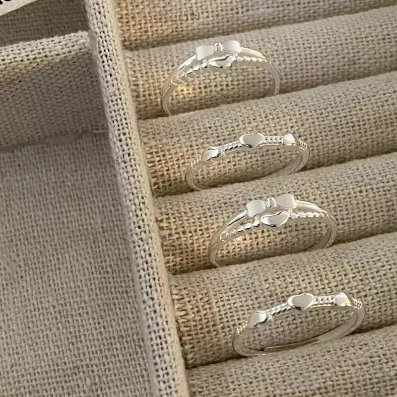 Color: E381 bow ring-Silver, E384 heart-shaped ring-Silver