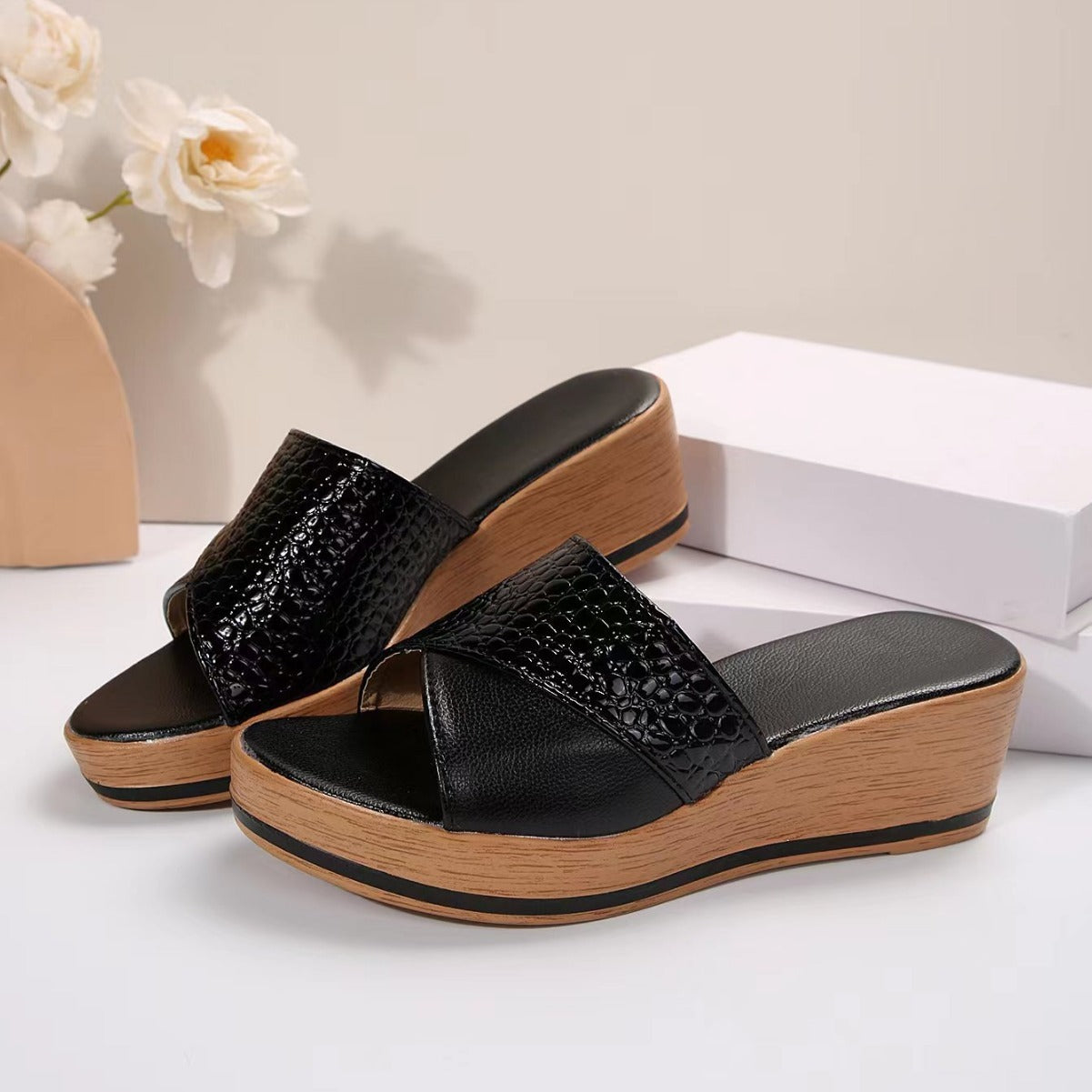 Fashion Snake-texture Wedges Sandals Summer Casual Peep-toe Thick Sole Heightening Slippers Outdoor Slides Shoes Women