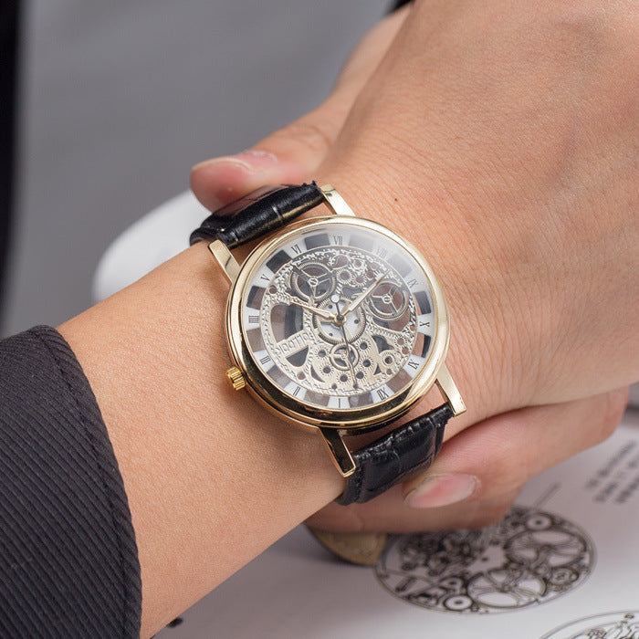 Energy-saving with hollow non mechanical watch retro Rome belt table for male and female couple watches