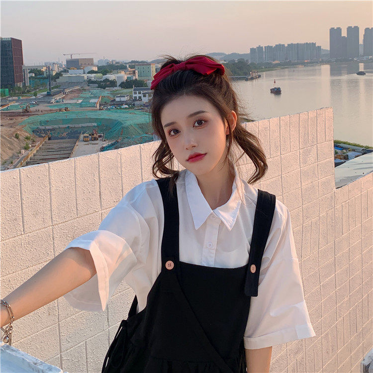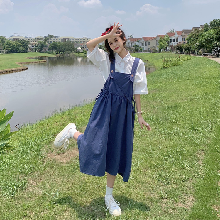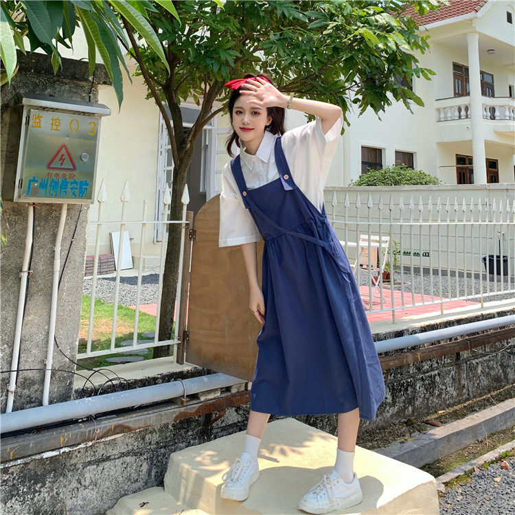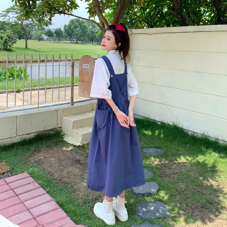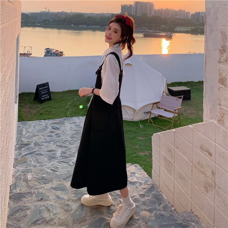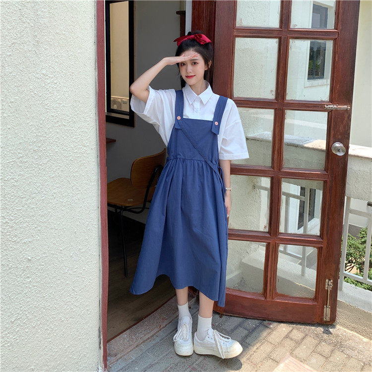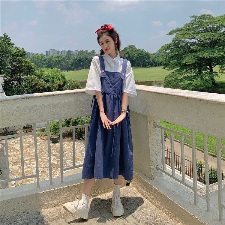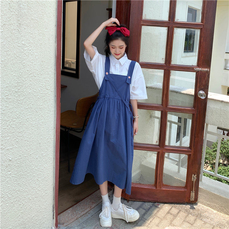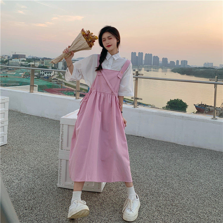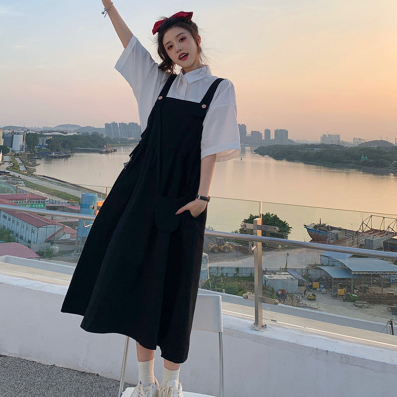 Color classification: White shirt + two-piece pink strap skirt (send bag) Skirt (send bag) One-piece blue suspender skirt (send bag) One-piece black suspender skirt (send bag)
