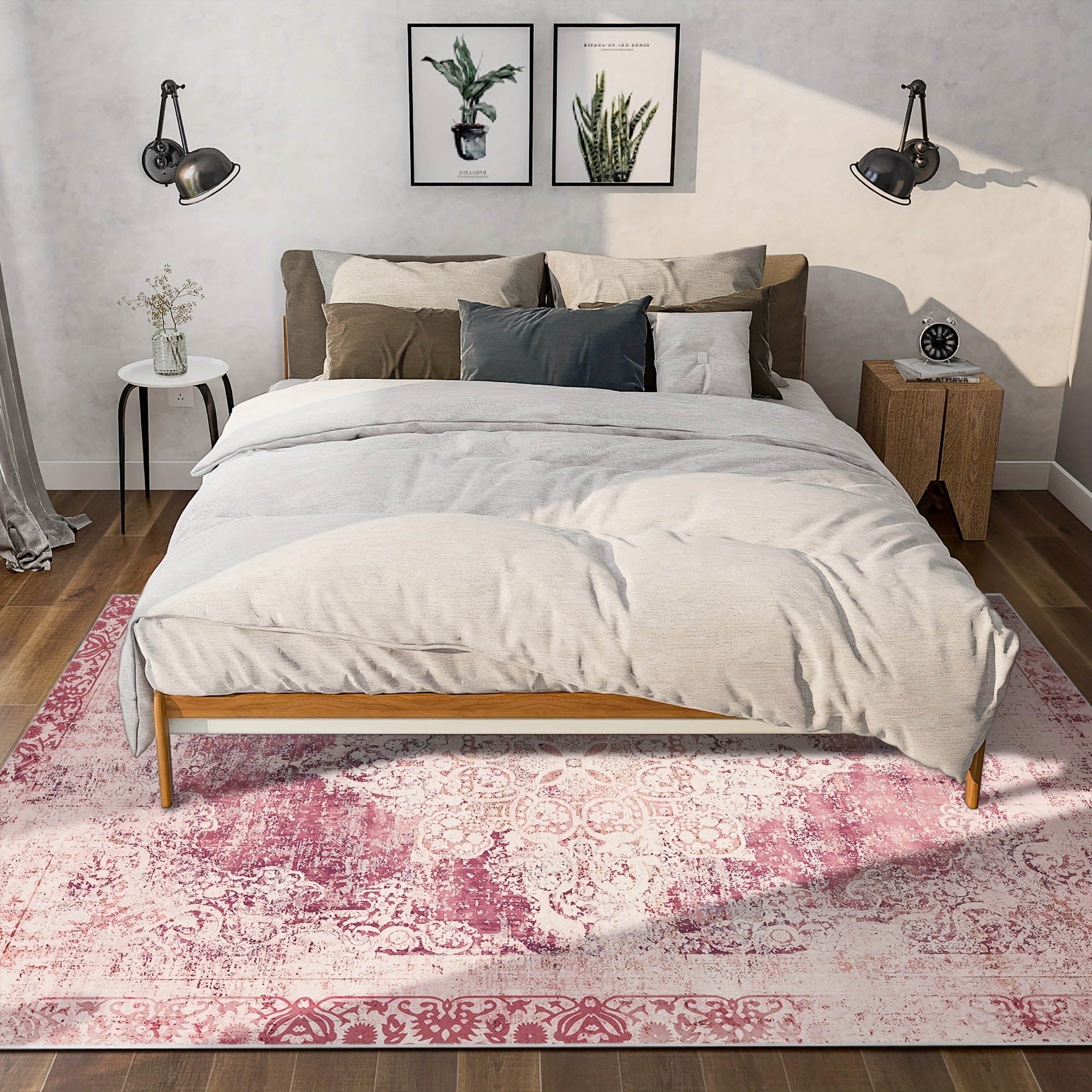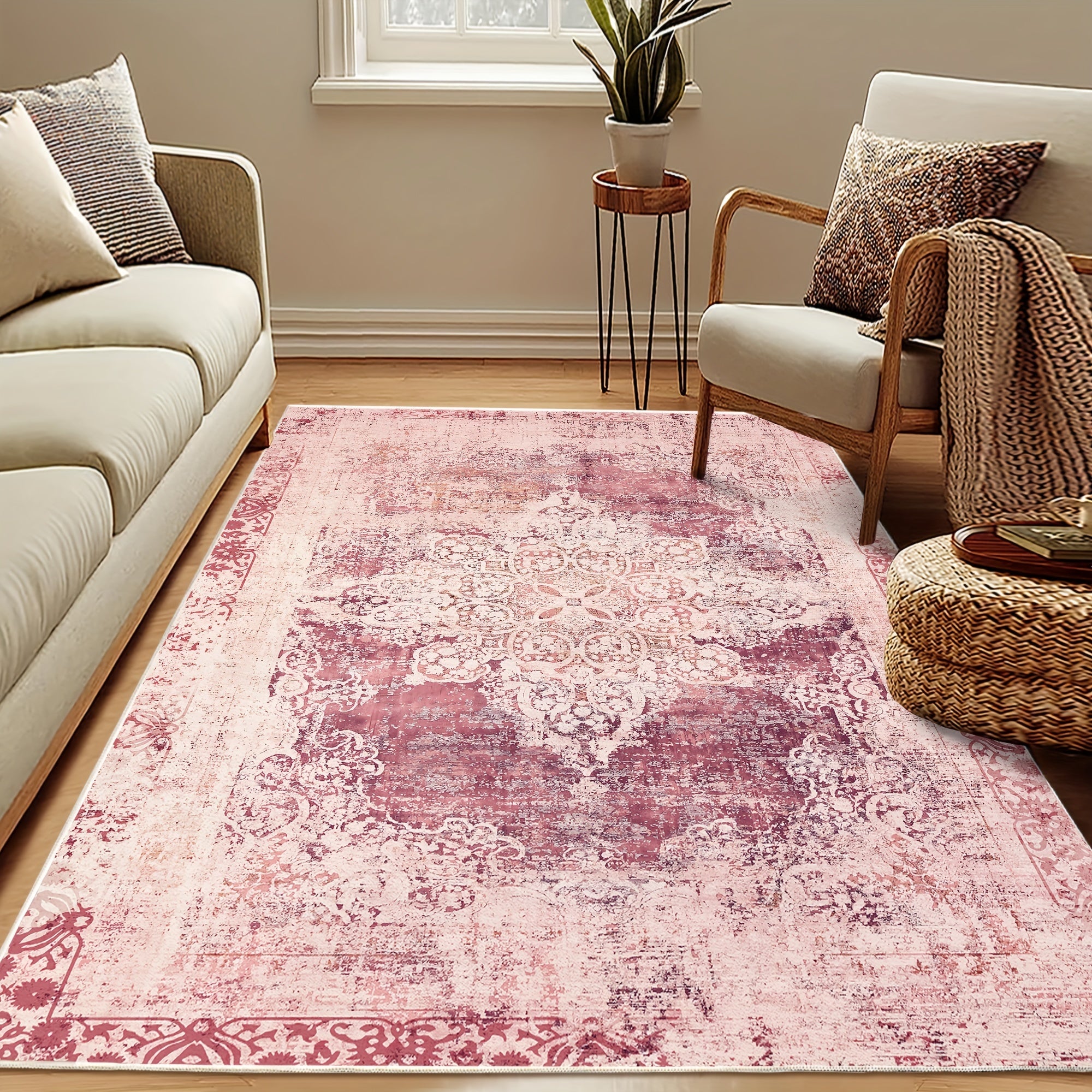 1pc imitation cashmere persia bohemia indoor area rug pattern pink carpets machine washable soft dirt resistant non slip living room rugs suitable for bedroom apartment office entrance decoration