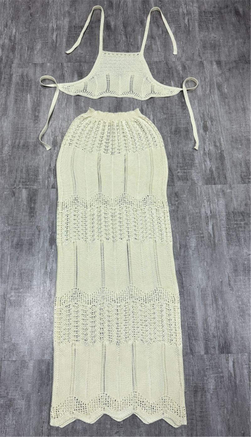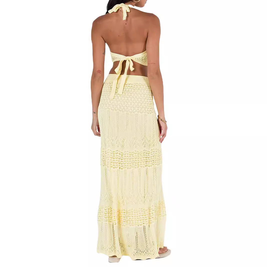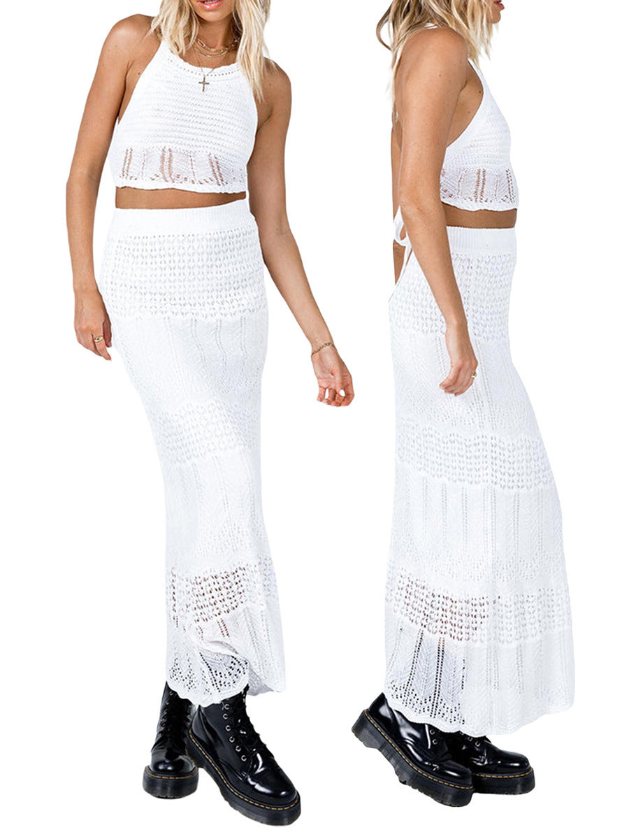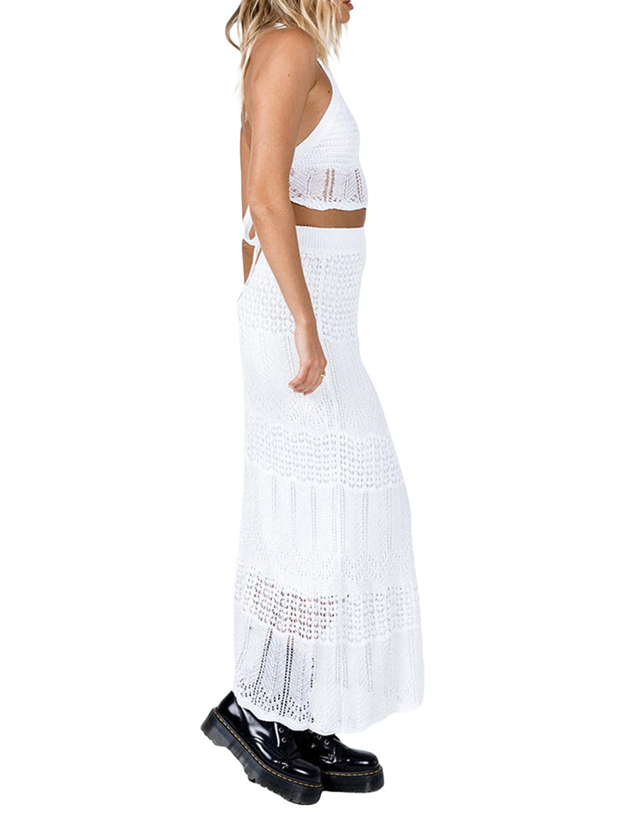 Top High Waist Skirt Two-piece Summer Knitted Beach Vacation Suit