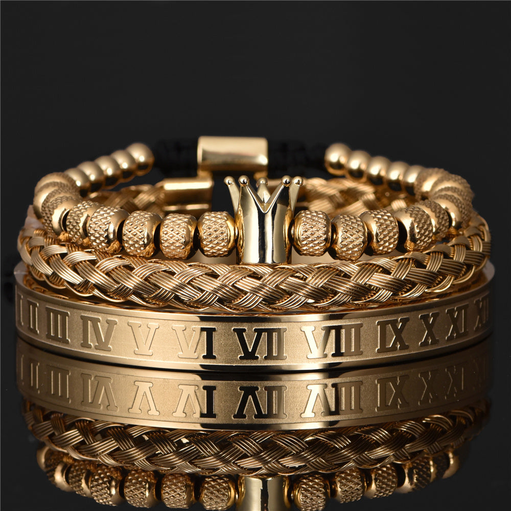 Original Design Crown 3-Piece Men's and Women's Bead Stainless Steel Handmade Bracelet
