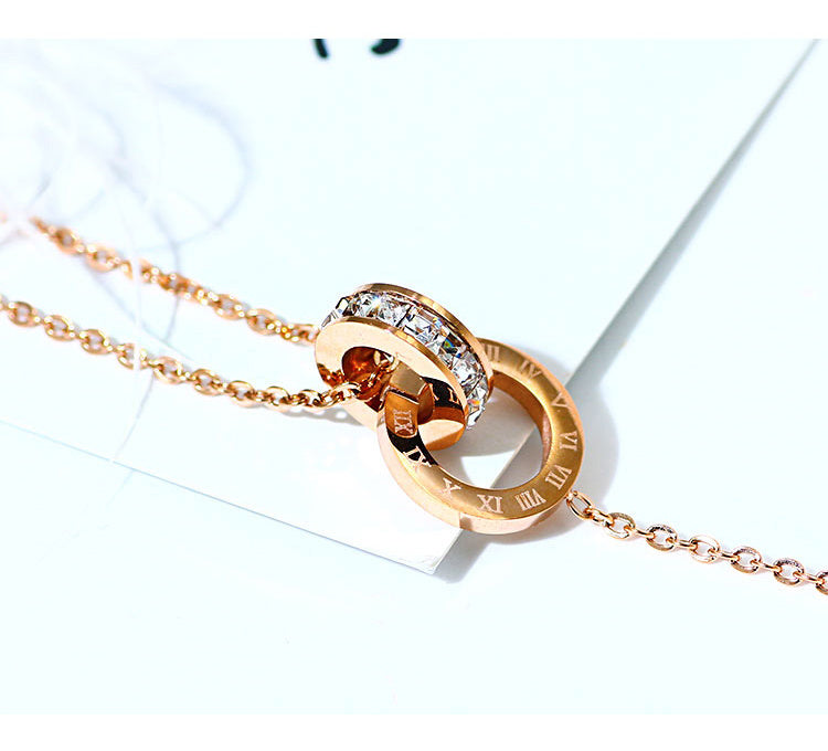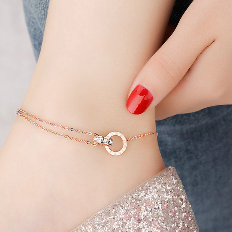 Roman Zircon Titanium Steel Anklet Rose Gold Silver