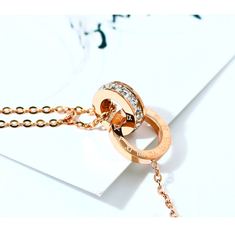 Color: Rose Gold [Secret of Time] Zircon Double Ring Anklet [Stainless Steel] Chain Length Approximately 20+5cm Extension Chain,