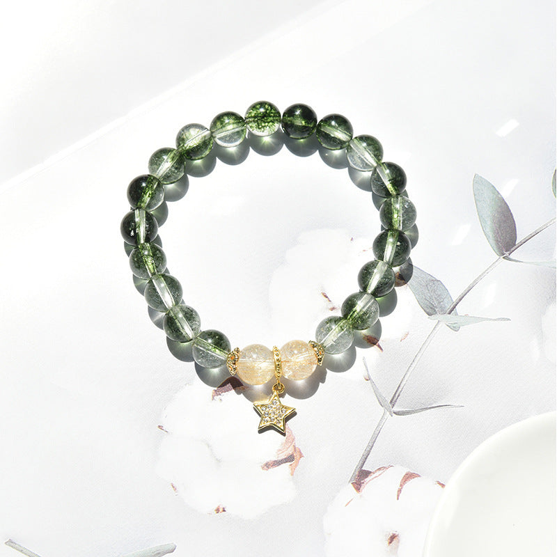 White Pop Flower Green Ghost Crystal Bracelet Women