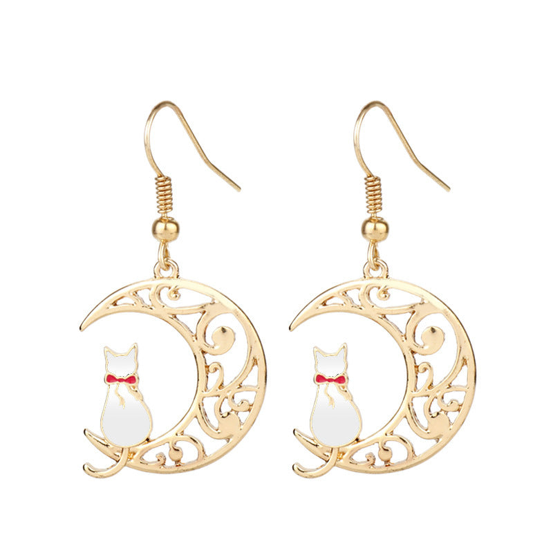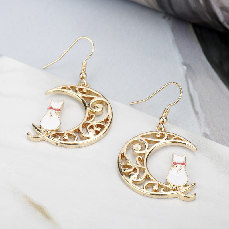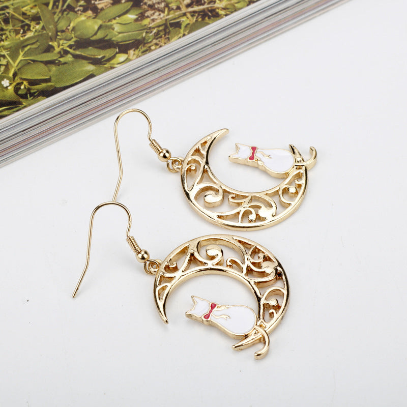 Empty Moon Cat Dripping Earrings Earrings Female Cartoon Animal Earrings