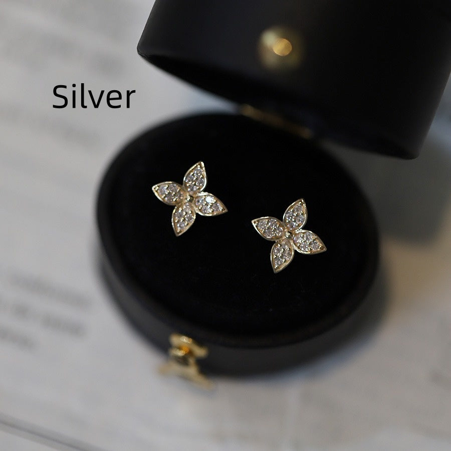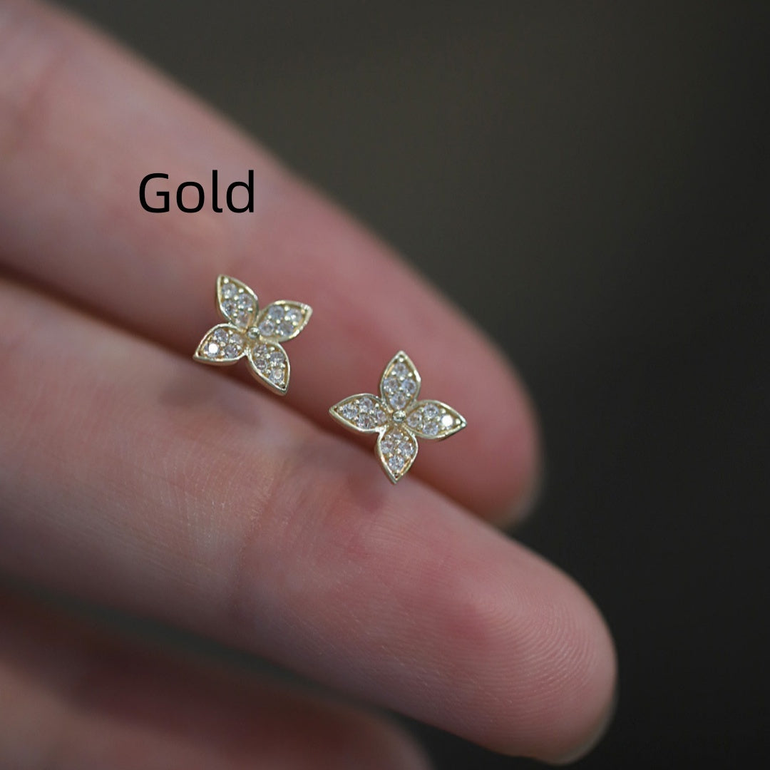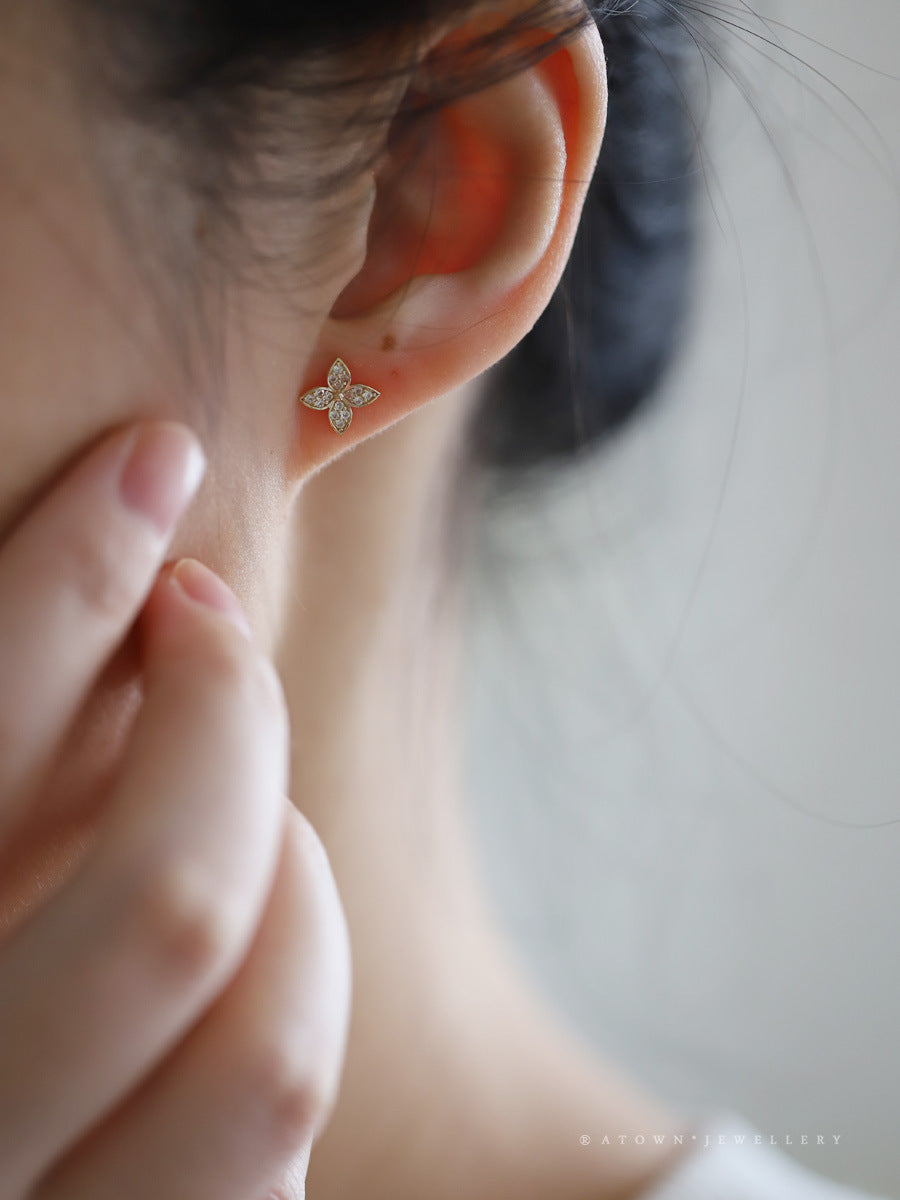 Female S925 Silver Plating 14K Flower Modelling Earrings