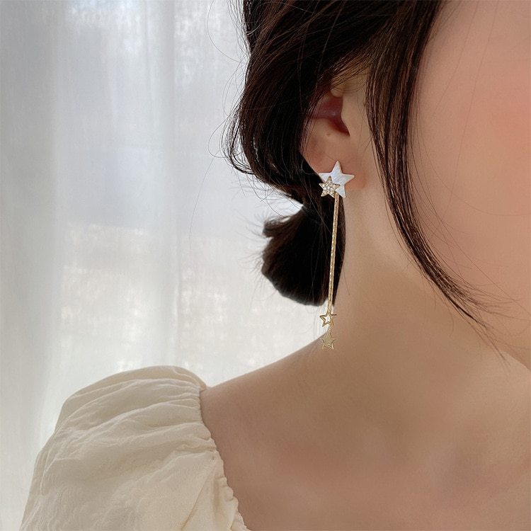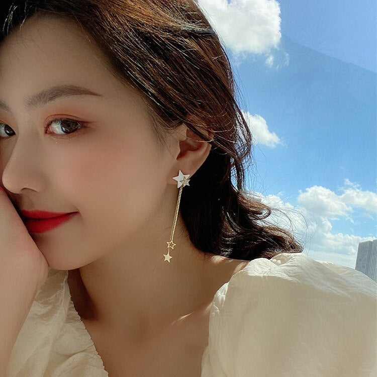 Silver Needle Star Tassel Earrings Long Earrings Fashion Personality Earrings
