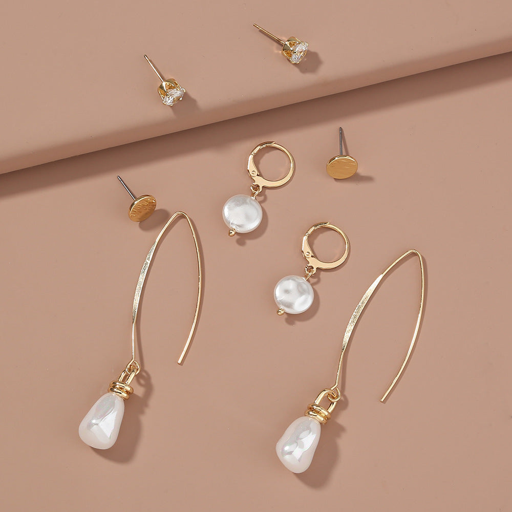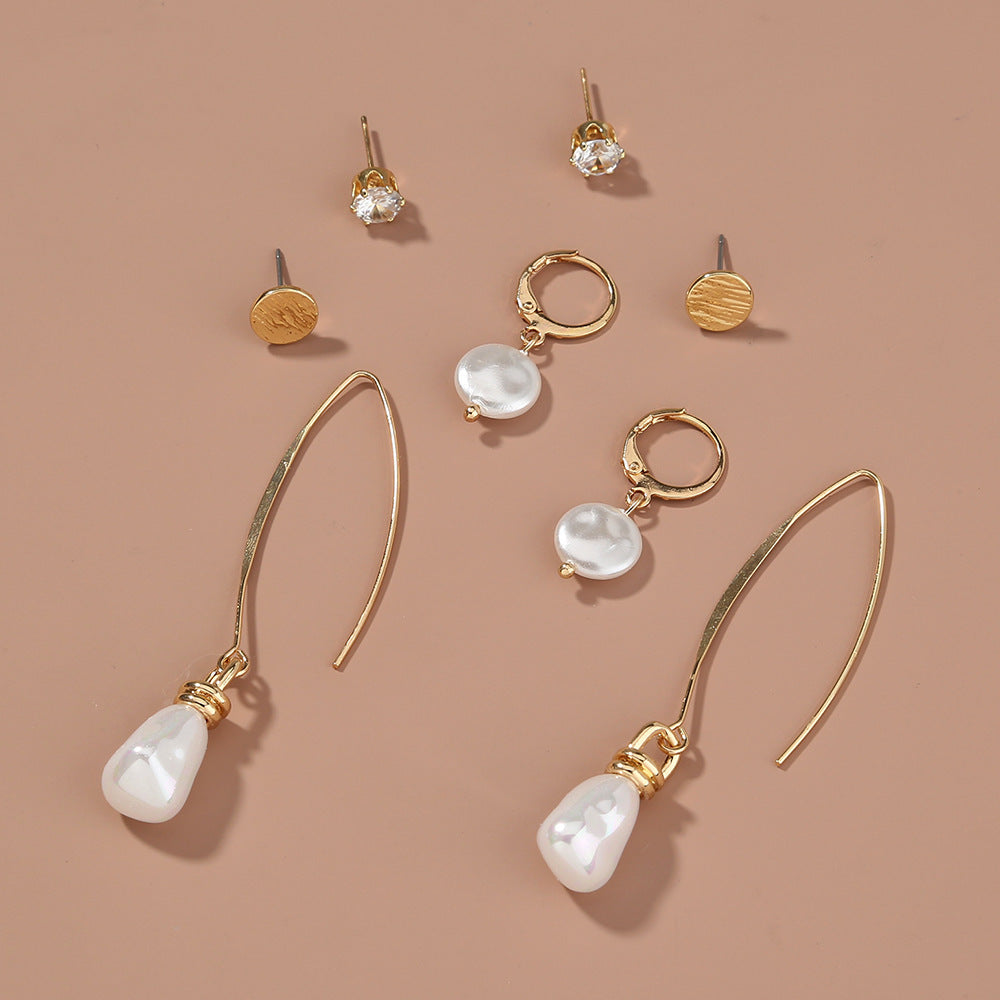 Simple And Versatile Earrings Set Diamond Pearl Earrings Drop Earrings Multi-style Earrings