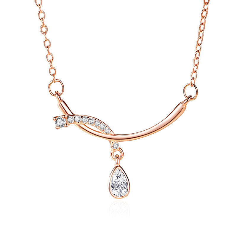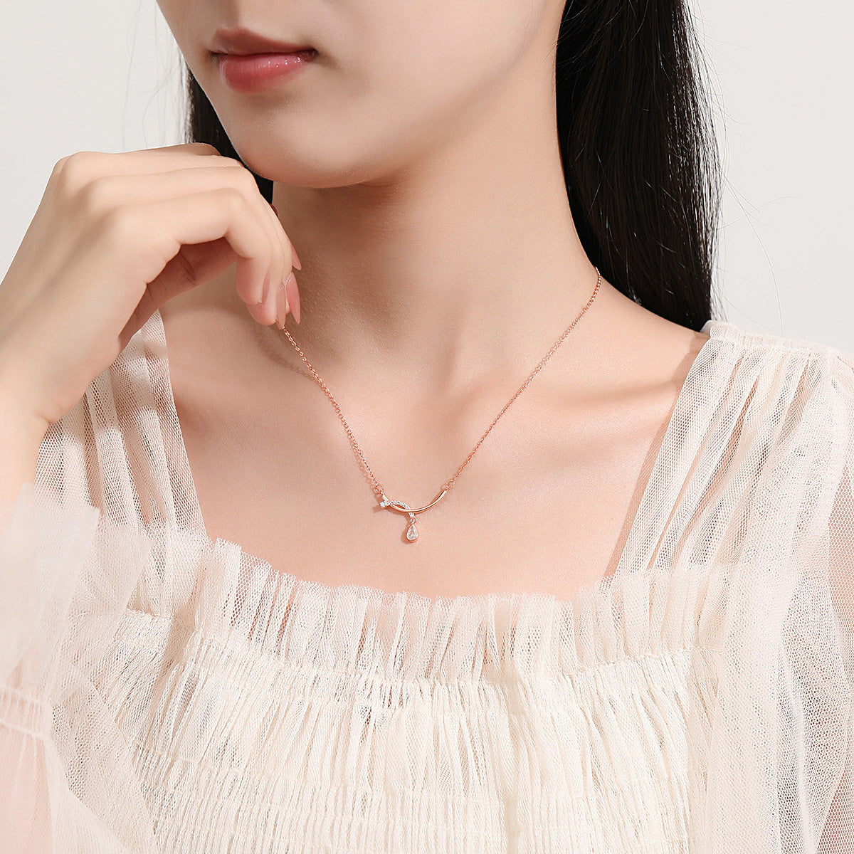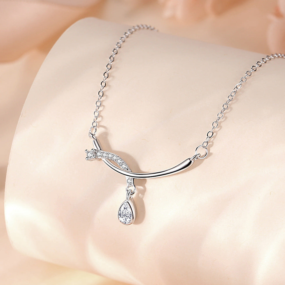 S925 Silver Drop Necklace Women's Korean-style Curved Tassel Fresh Clavicle Chain Neck Chain Internet Celebrity Rhinestone-encrusted Jewelry