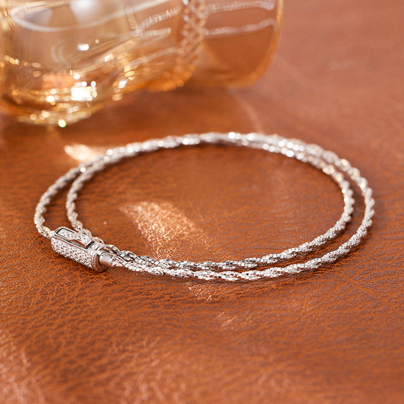S925 Sterling Silver Necklace Women's Light Luxury Advanced Chain Design Micro Inlaid Zircon Hemp Flowers Chain