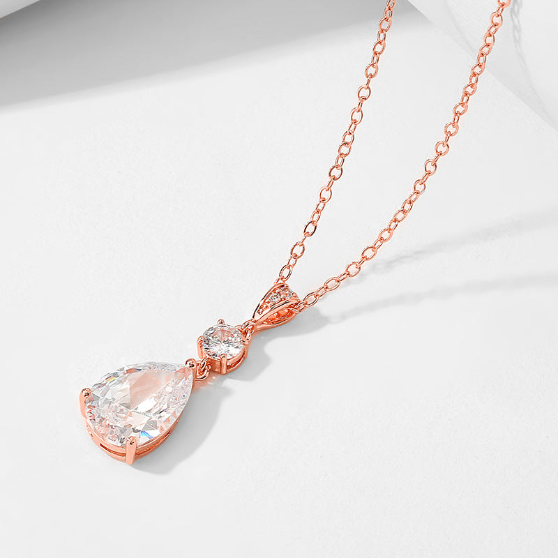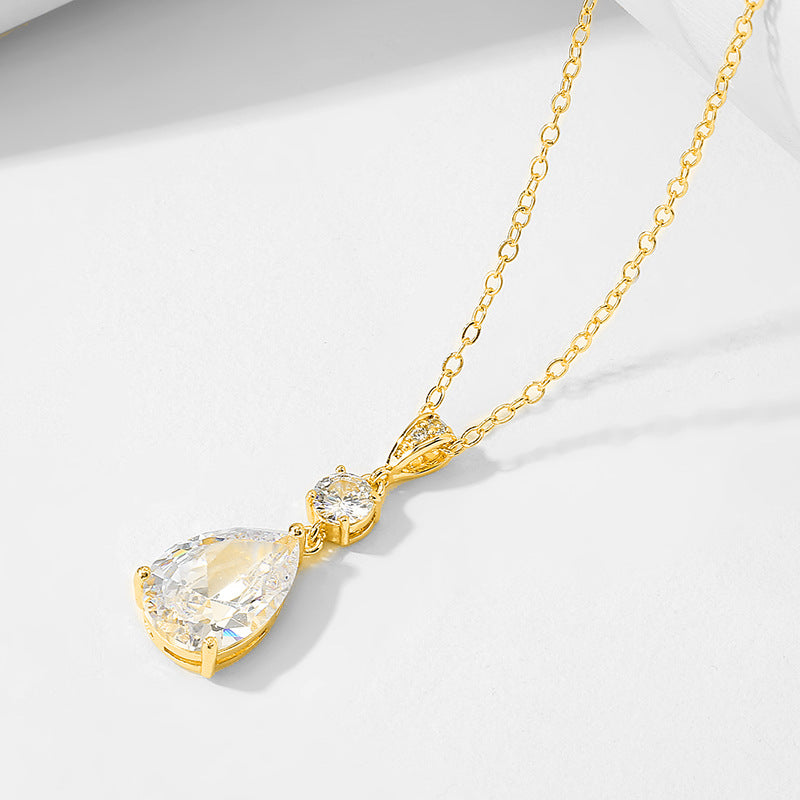 Simple And Fresh Water Drop Zircon Pendant Necklace
