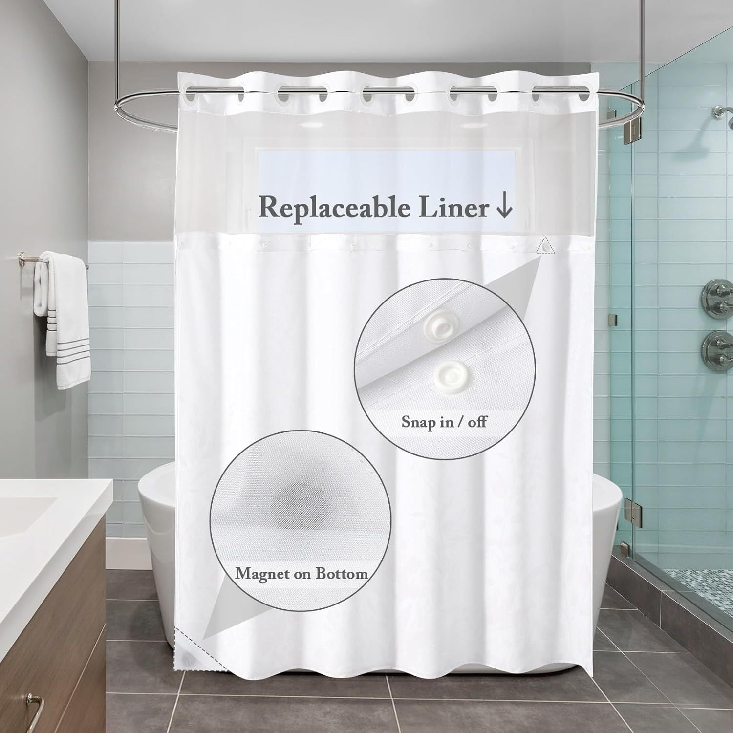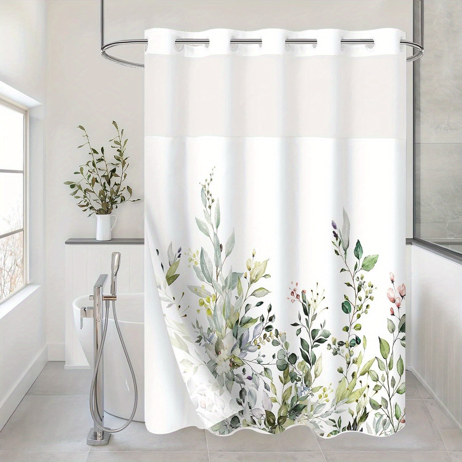 1pc No Hook Eucalyptus Shower Curtain With Snap-in Fabric Liner Set, Hotel Style Sage Green Plant Leaves Double Shower Curtain With See Through Top Window, Waterproof & Washable