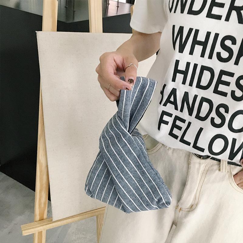 Grab-N-Go Linen Wristlet Hand Bags - Coffee Stripes