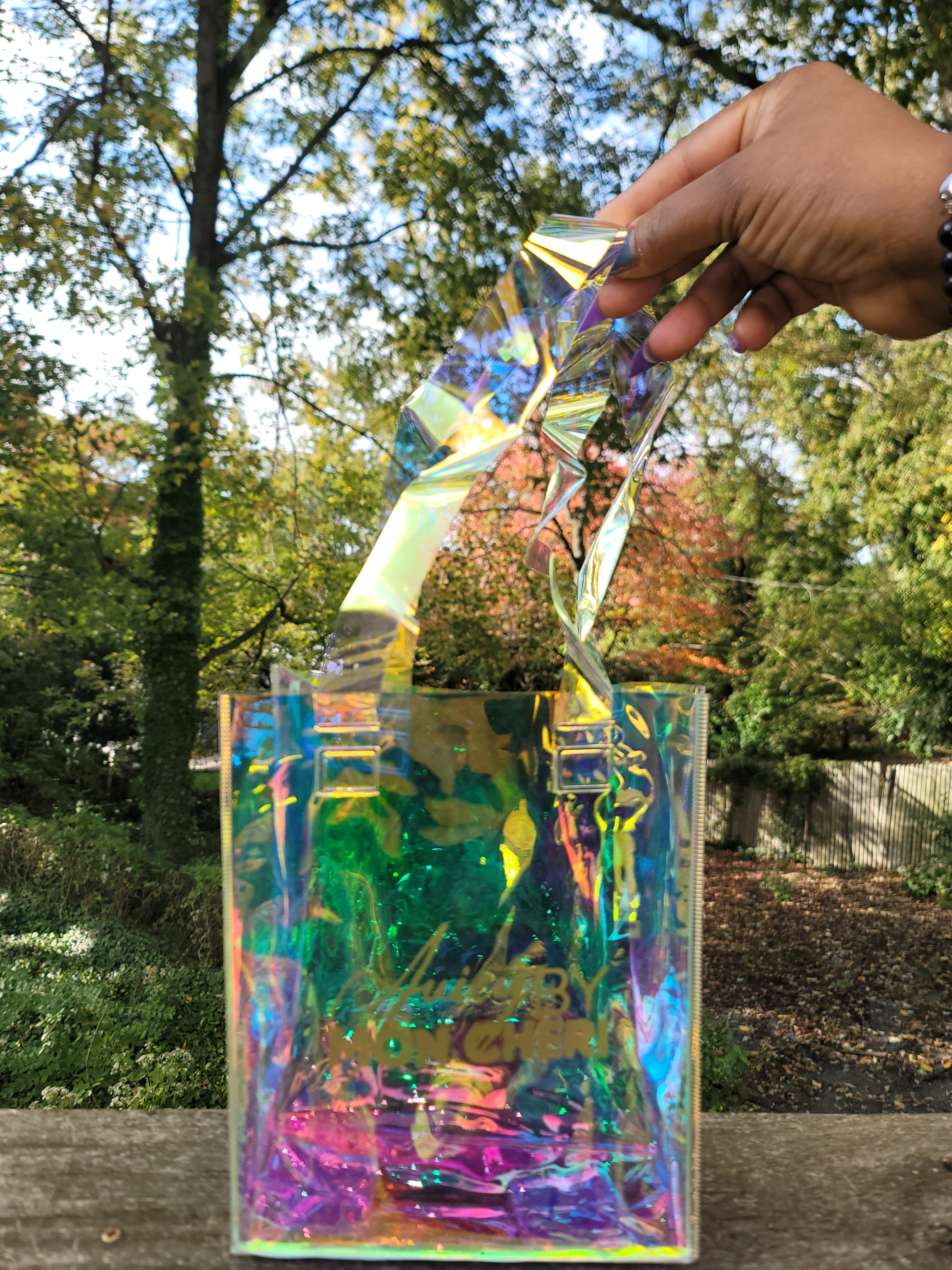 Shine with Style: Get Your Hands on Our Holographic Translucent Reusable Tote