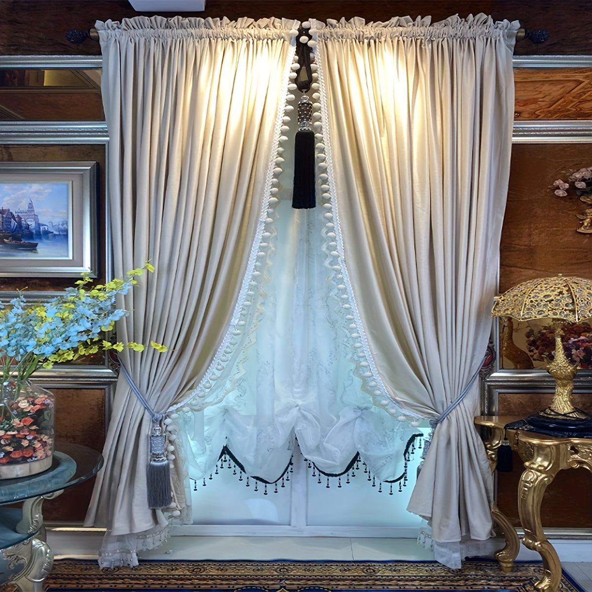[Princess Favorite] Princess Room Curtains Living Room Bedroom High-grade Velvet Small Clear Ins Style Cream Style New House Decoration Decoration Home Gift Beige 2PCS