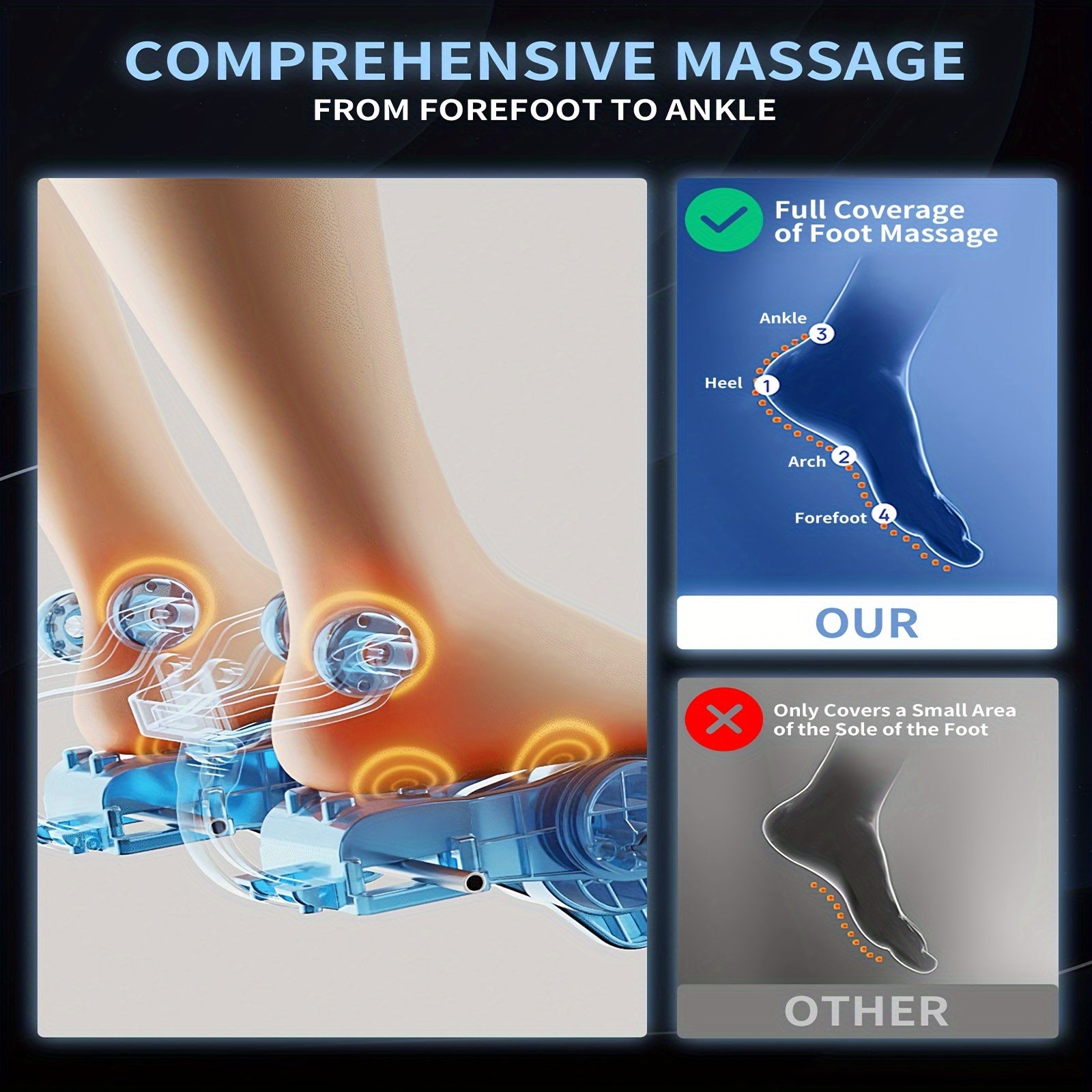 Enhanced 3D Foot Massage: Massaging from the front of the foot to the ankle. The unique layout of our massage chair includes 3D rollers that effectively activate the bottom of your feet and focus on important pressure points, reaching up to the ankles for a thorough massage session.