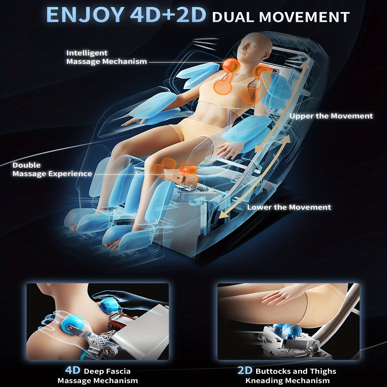 Enhanced Comfort with 4D+2D Dual System: Experience double the comfort with the innovative 4D+2D dual system! Enjoy a range of back massages with the 4D mechanism, while the specialized 2D mechanism targets the buttocks and thigh muscles for a personalized touch. It's like having two massage therapists simultaneously ensuring your comfort! A harmonious fusion of innovation and comfort for an unparalleled relaxation experience. It's a perfect synergy where the whole is greater than the sum of its parts, all for your comfort!