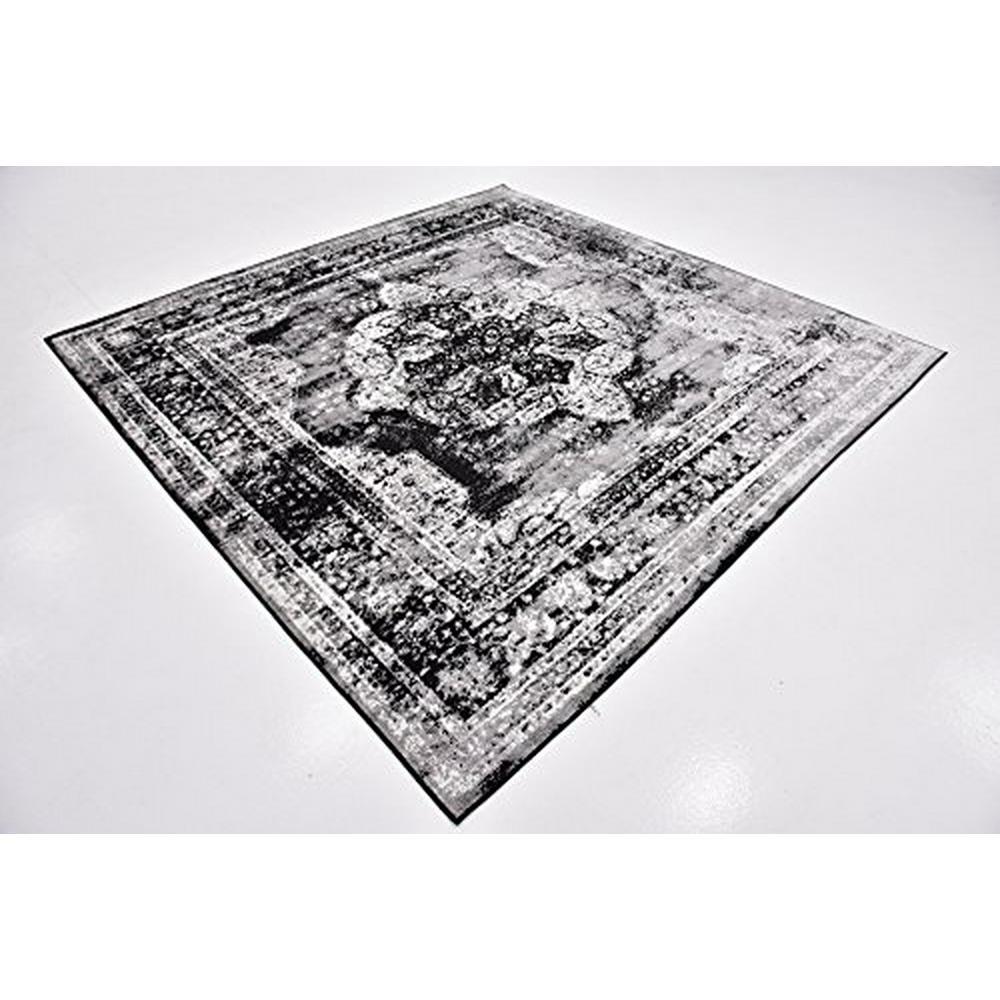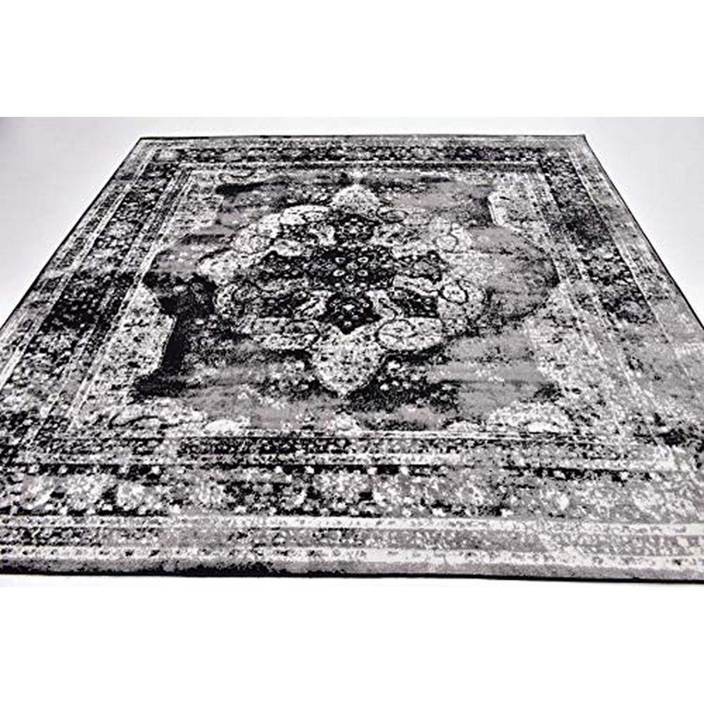 Introducing the Unique Loom Sofia Collection Area Rug in the Salle Garnier design. This exquisite rug brings a touch of elegance and tradition to any space. With its vintage-inspired black and ivory color palette, it seamlessly complements both modern and classic home decor. The intricate patterns evoke a timeless charm, making it a perfect addition to your living room, dining room, or bedroom. Measuring 7' 10" square, it’s an ideal size for adding a sophisticated touch to larger areas. Crafted from 100% polypropylene with a soft 0.25" pile height, this rug ensures durability and comfort. Power loomed in Turkey, it combines robust construction with the luxurious feel of a plush rug. The 100% jute backing provides stability and is safe for all floor types, including hardwood floors. Whether your style leans towards contemporary or traditional, the Sofia Collection’s intricate designs enhance a variety of settings, from entryways to home offices. Maintenance is convenient with this rug. Regular vacuuming and spot cleaning keep it looking fresh and vibrant. For deeper cleaning, a carpet cleaner can be used, ensuring it is dried immediately and evenly to maintain its pristine condition. If any creases form during unpacking, rolling the rug in the opposite direction while applying pressure will help smooth it out. Available in numerous shapes, sizes, and colors, including hard-to-find shapes, this rug accommodates diverse stylistic needs and personal preferences.