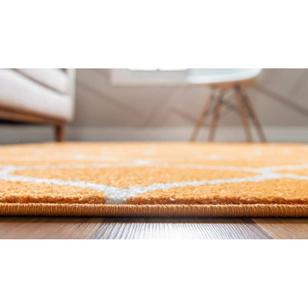 Transform your living space with the Unique Loom Trellis Frieze Collection Area Rug, a stunning statement piece that combines elegance with functionality. Measuring 10' x 14' 1", this vibrant orange and ivory rug is perfect for larger rooms, providing a bold pop of color that brightens any décor. The trellis pattern is not only visually appealing but also offers a touch of geometry to complement modern and contemporary settings. Crafted with durability in mind, this area rug is designed for busy households. Its synthetic fibers are highly resistant to fading, stains, and spills. This ensures the rug maintains its vibrant color and pristine condition even in high-traffic areas. The low-pile construction of the rug minimizes dirt and debris entrapment, making regular vacuuming quick and efficient. Ideal for families with children and pets, the rug’s soft plush texture provides comfort underfoot. This makes it a suitable addition to kids' rooms, nurseries, or any family gathering area. Its robust quality withstands repeated use while providing a cozy and safe surface for play and relaxation. Moreover, its versatile design allows it to seamlessly blend with boho, farmhouse, or modern interior styles.