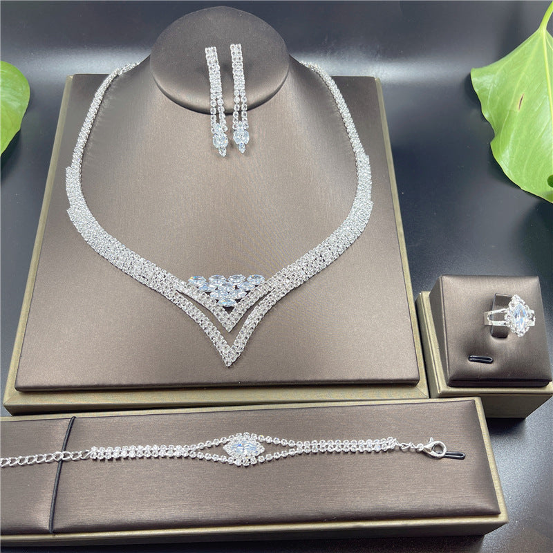 Rhinestone Jewelry Clavicle Chain x1 Earrings x1 Bracelet x1 Ring x1