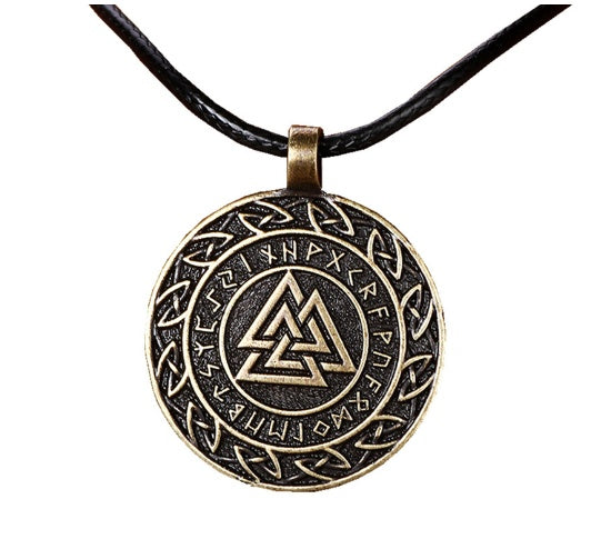 Asgard Crafted Circular Horn Valknut Symbol Pendant & Chain