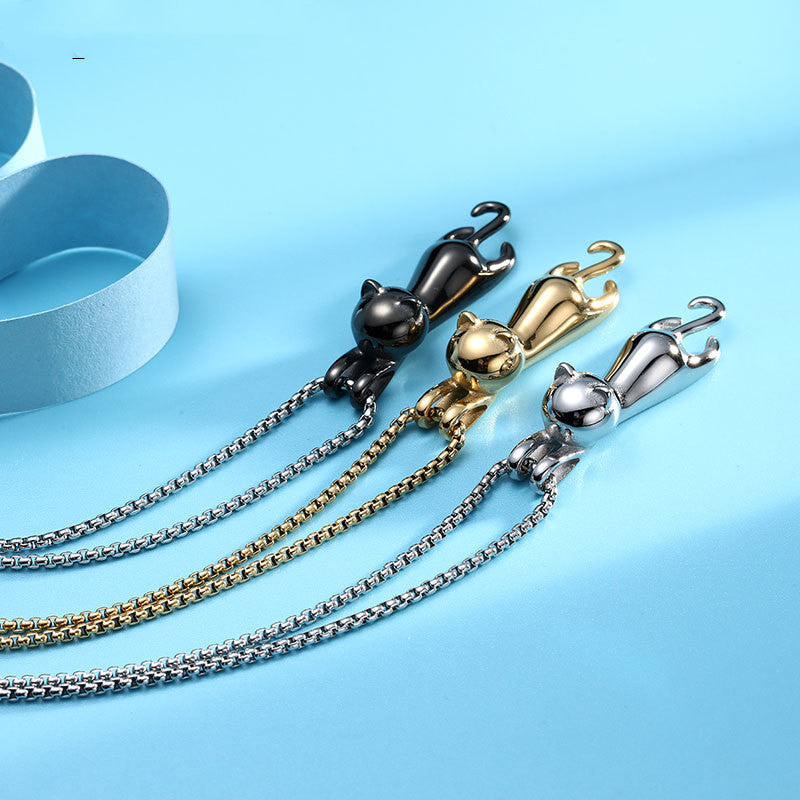 Cat Necklace Pendant Titanium Steel Necklace Peeping Cat