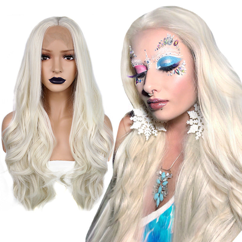 Fashion White Wavy Volume Front Lace Chemical Fiber Wig Beige