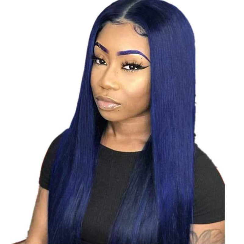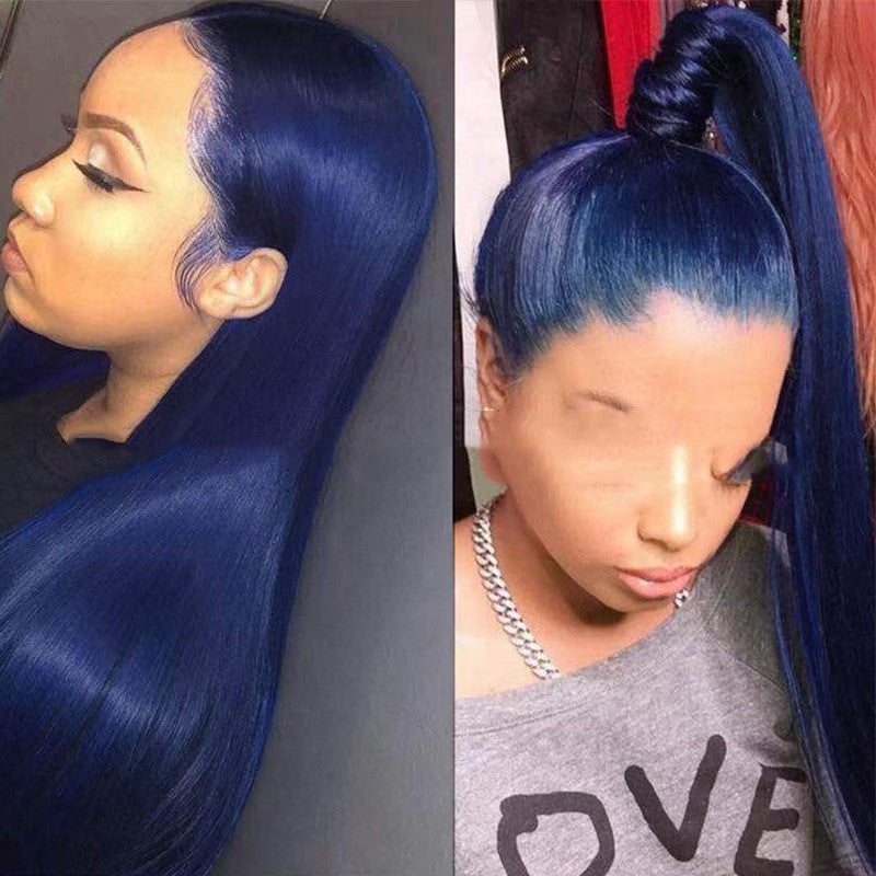 High Temperature Silk Dyeing Blue Mid-length Straight Hair