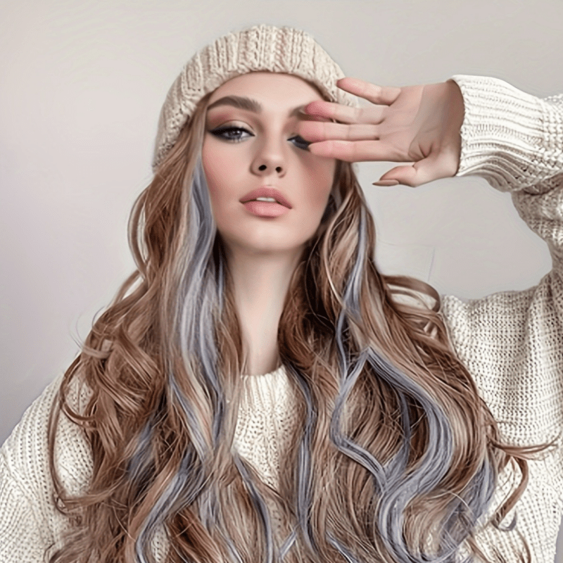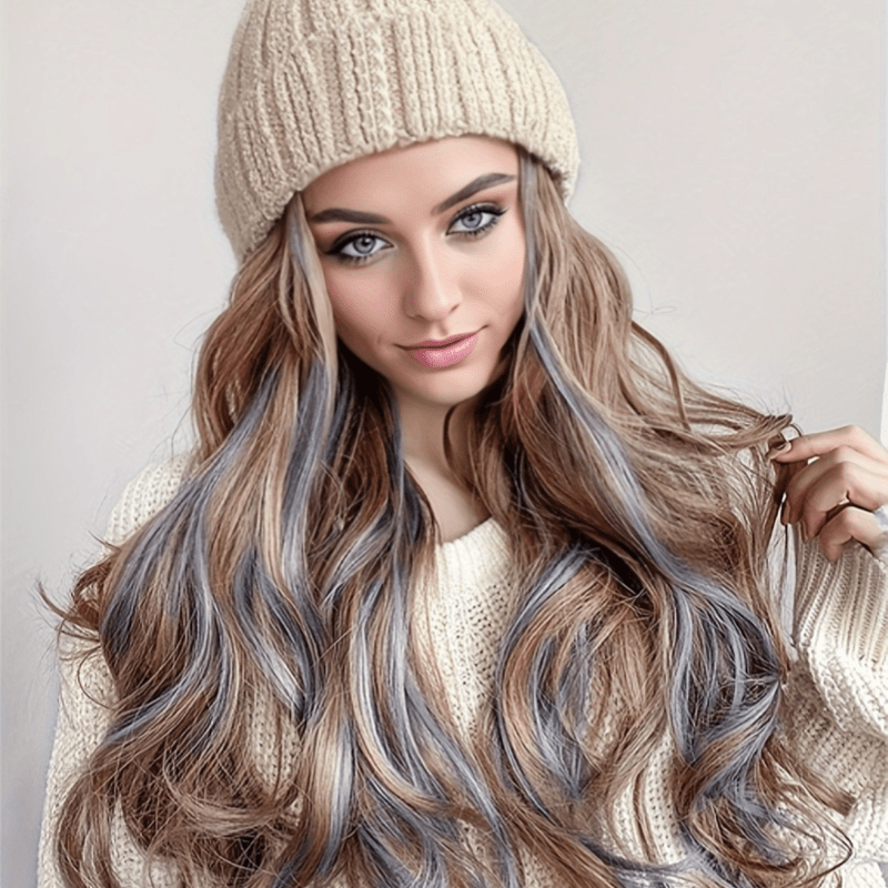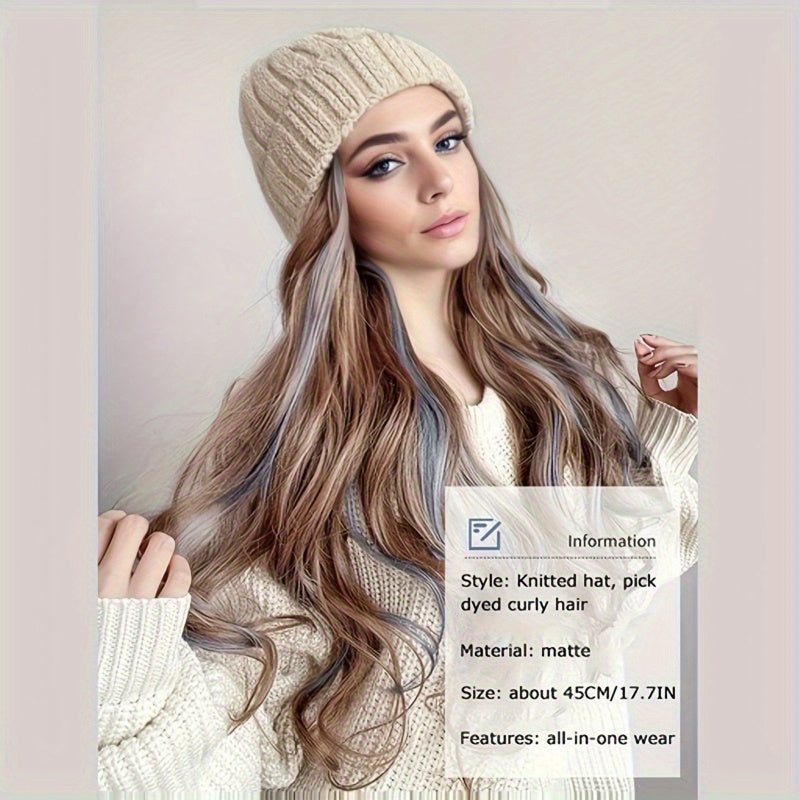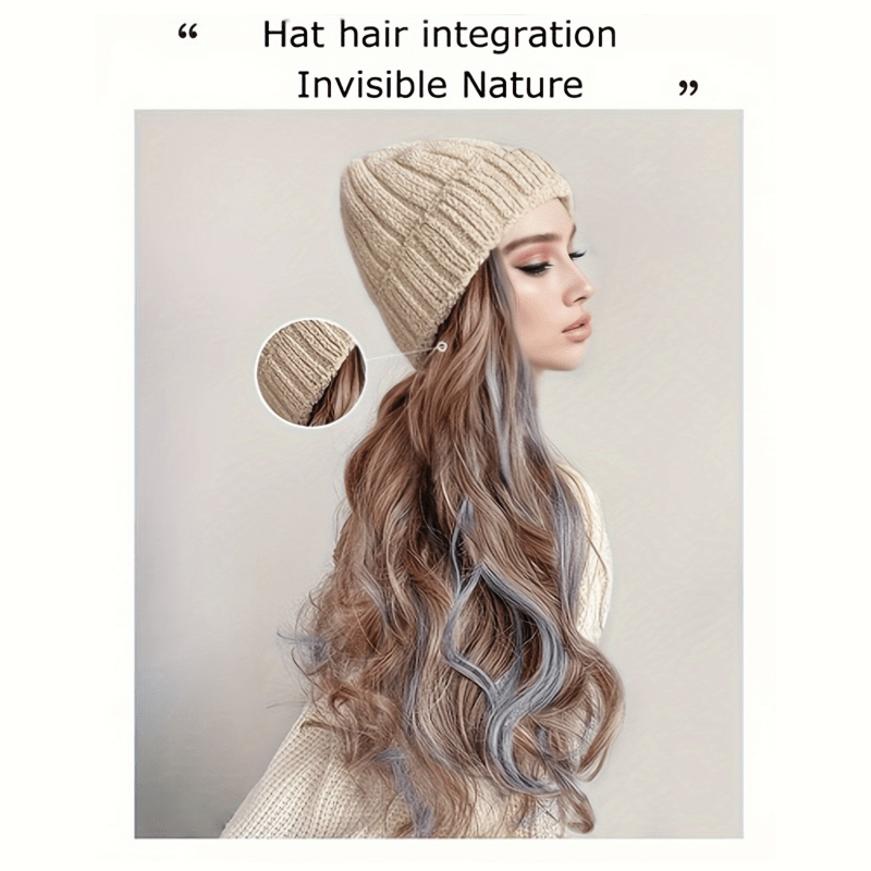 Women Curly Wig Wavy Curly Wig Hat and Wig in One Long Natural Realistic Wig Hat Heat Resistant Hair Wig for Daily Party