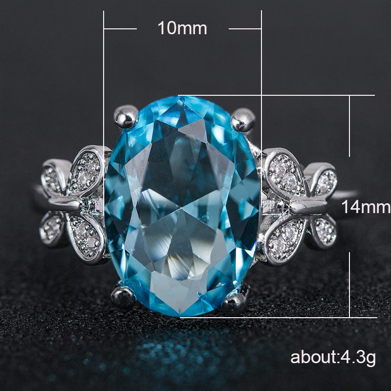 Oversized Sea Blue Zircon Ladies Ring Simple Bow Ring Ring