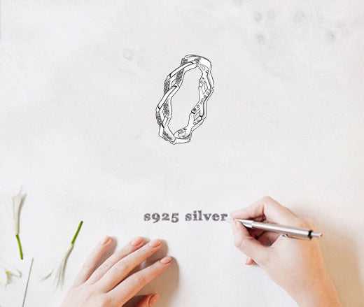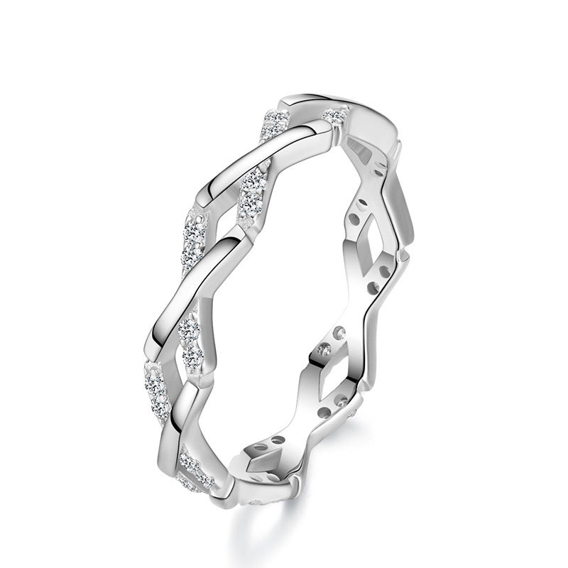S925 Sterling Silver Ring Women'S Micro-Inlaid Line Ring Tail Ring