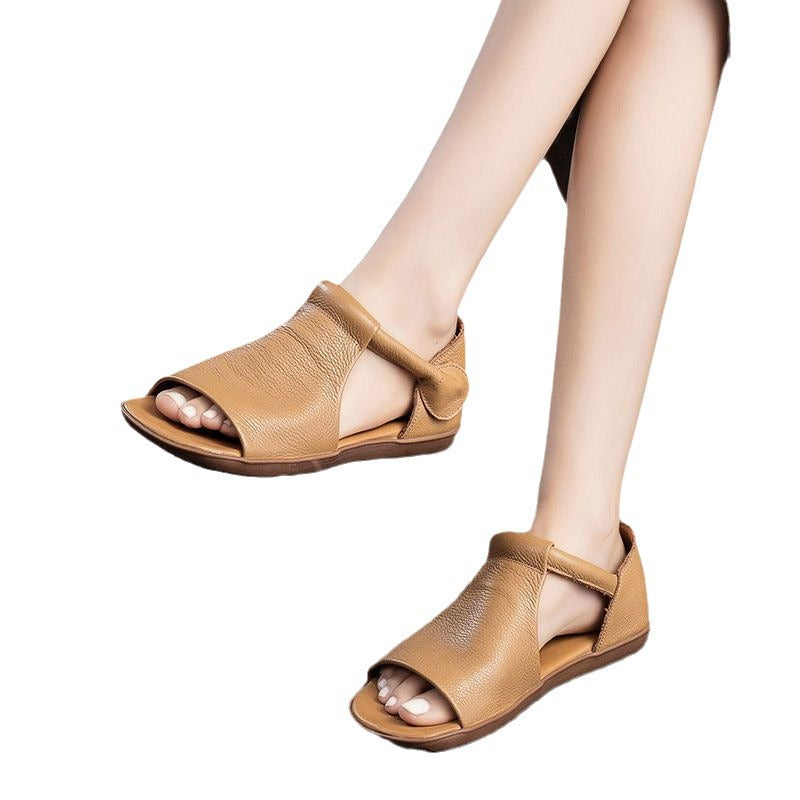 Authentic Leather British Style Handmade Velcro Open Toe Sandals