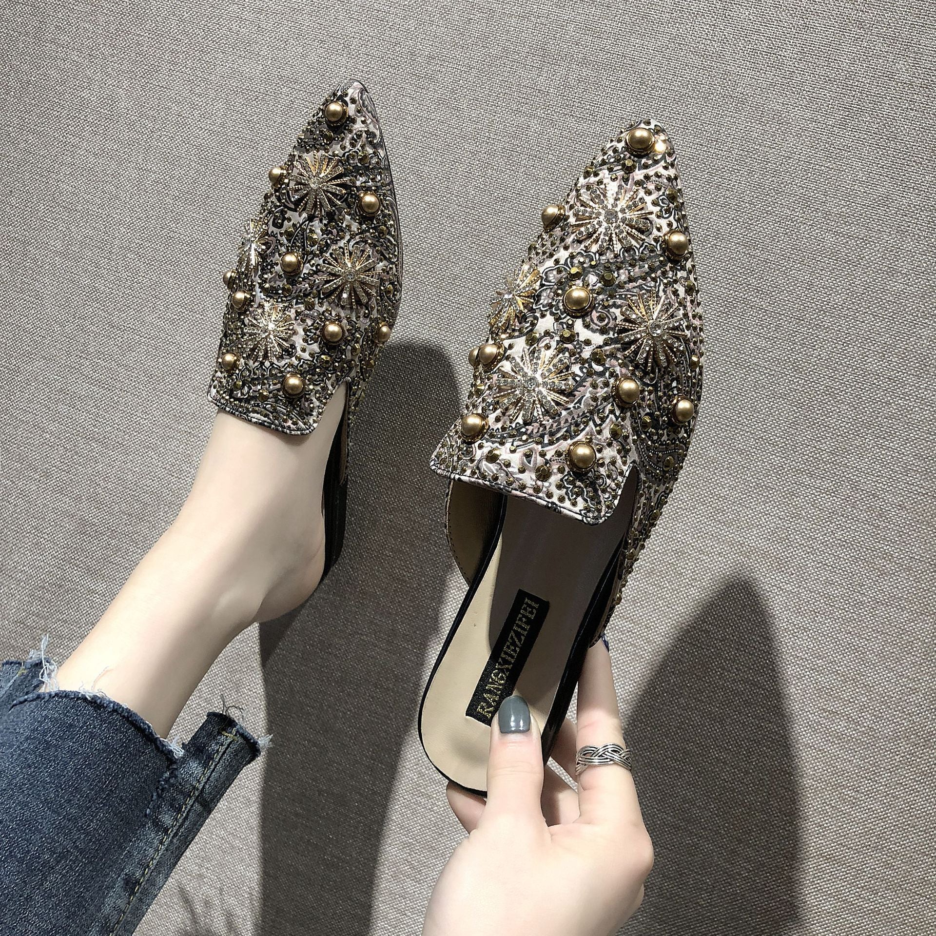 Baotou Half Slippers Women Flat Pointed Lazy Sandals And Slippers