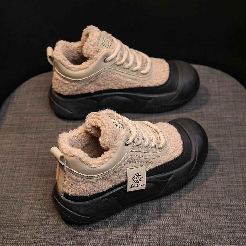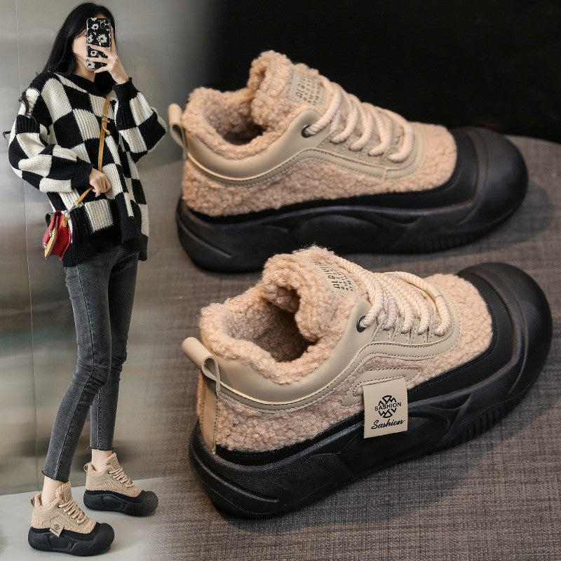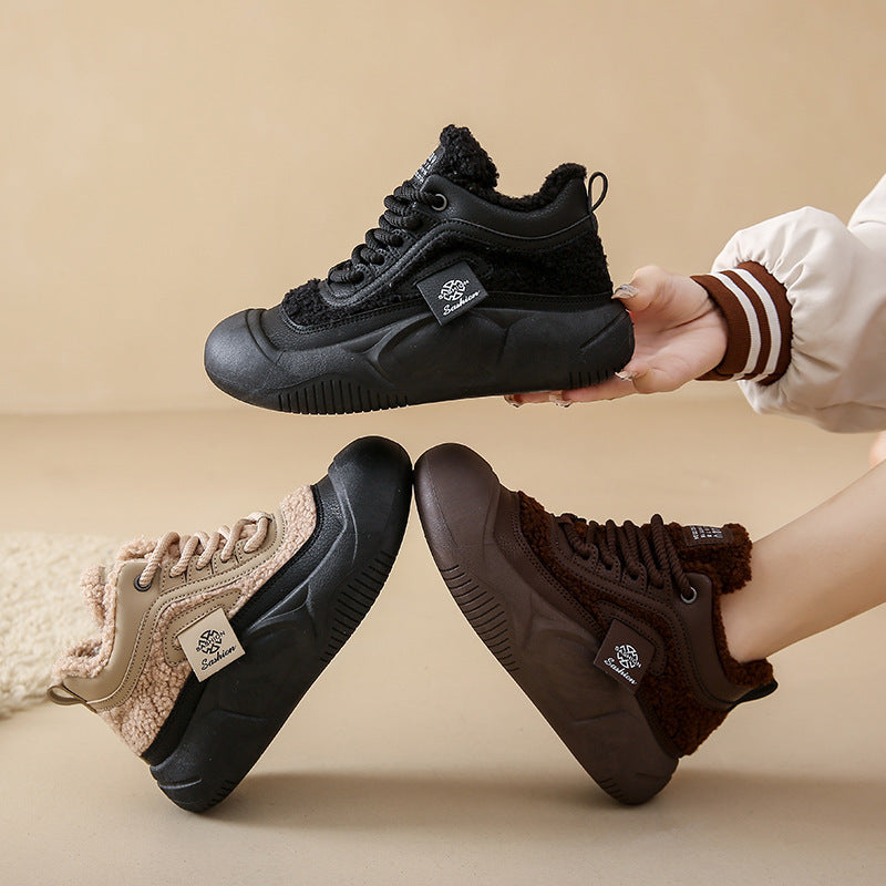 Fleece-lined Female Warm All-matching Casual Sports Skate Shoes