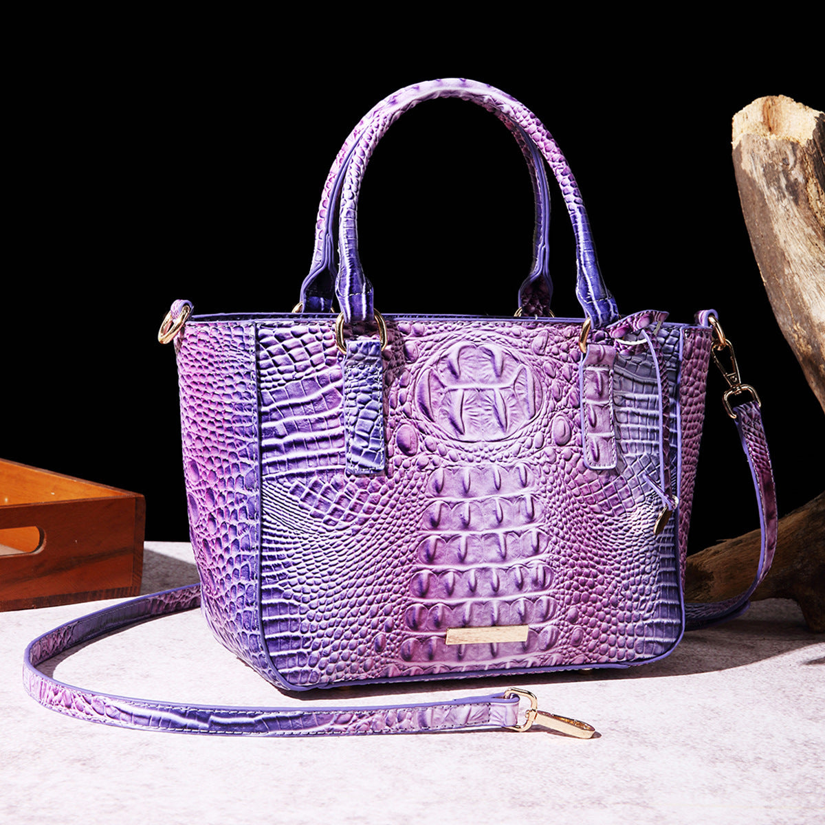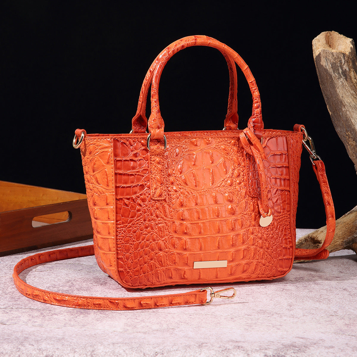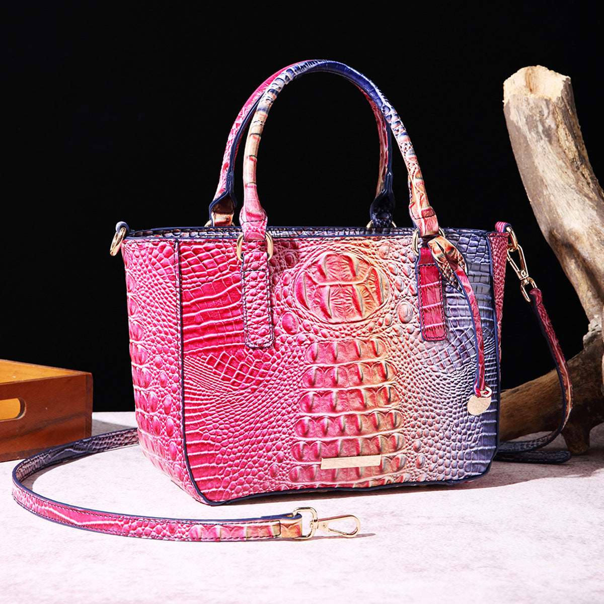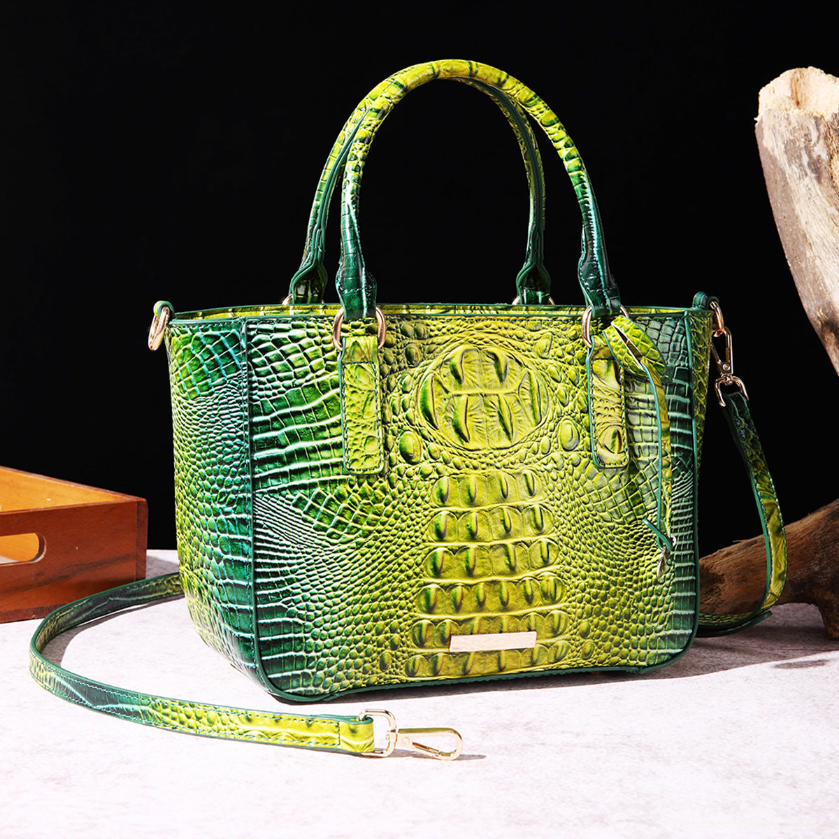 Women's Fashion Retro Brahmin Crocodile Pattern Portable Underarm Messenger Bag
