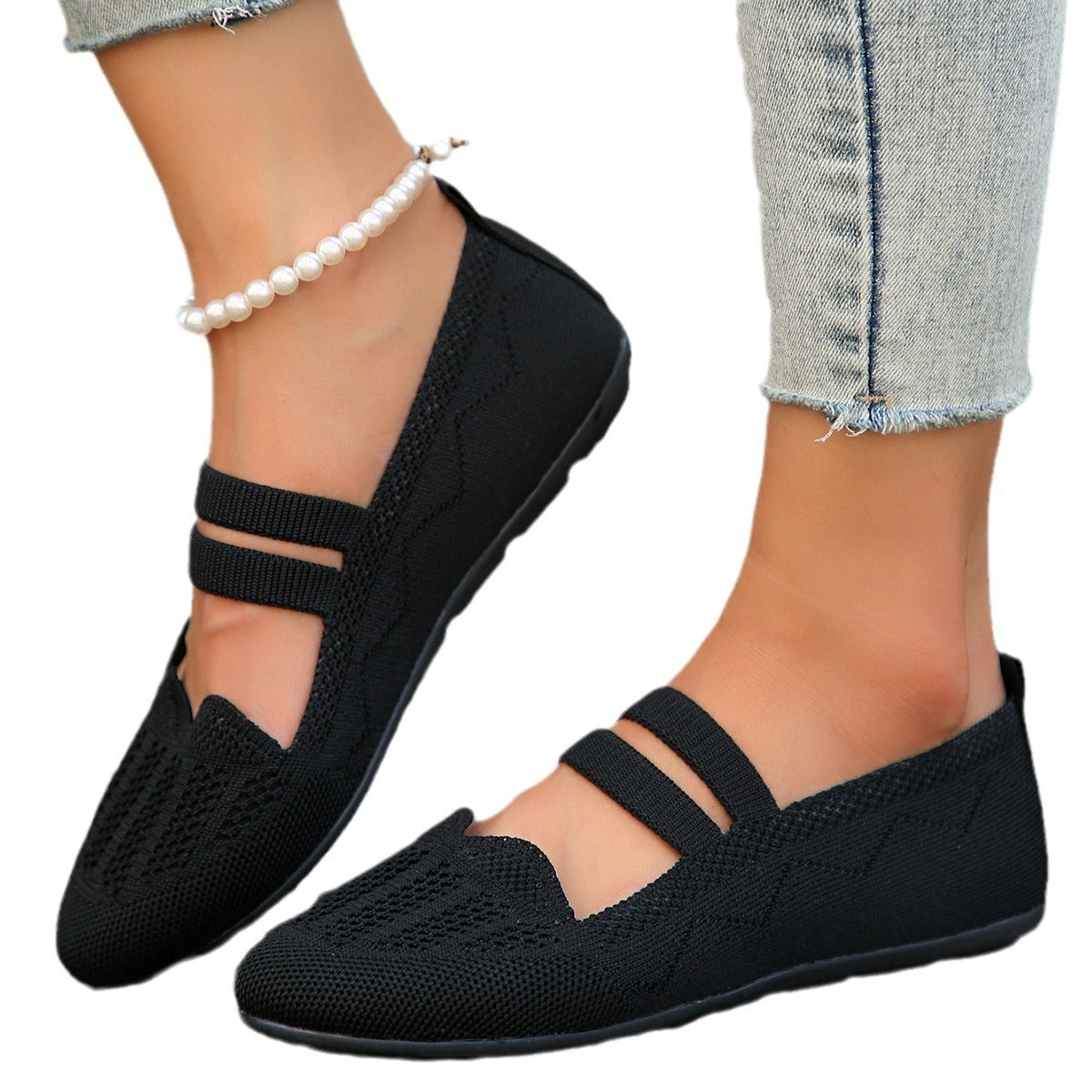 Women's Low-cut Round Toe Slip-on Knit Casual Flat Shoes