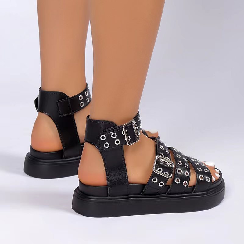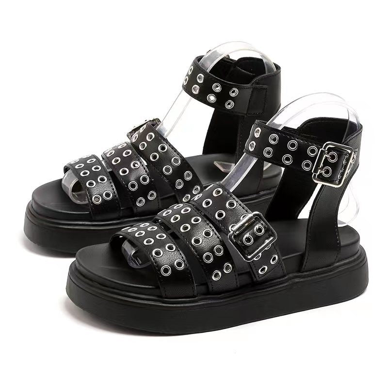 Women's Open Toe Thick Bottom Outdoor Rivet Button Sandals