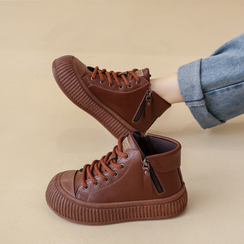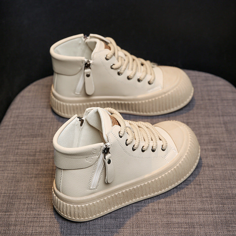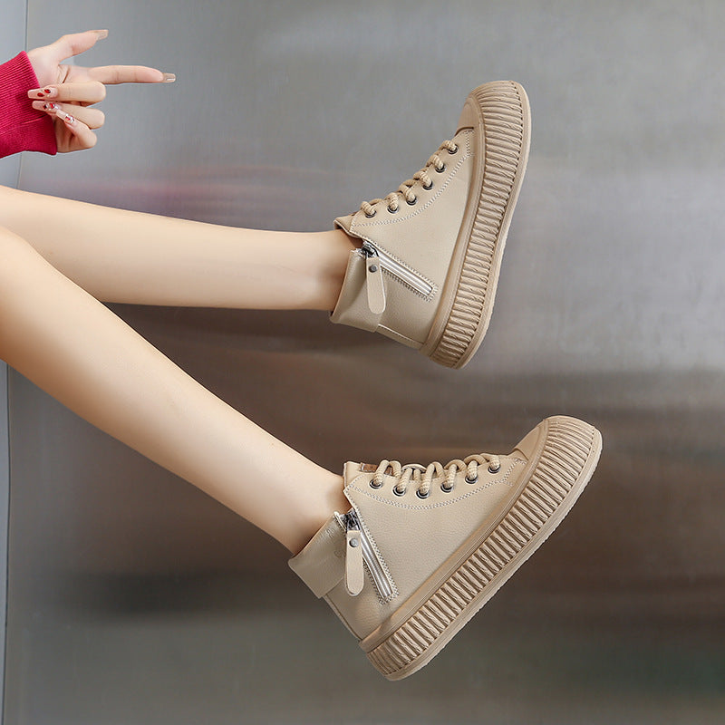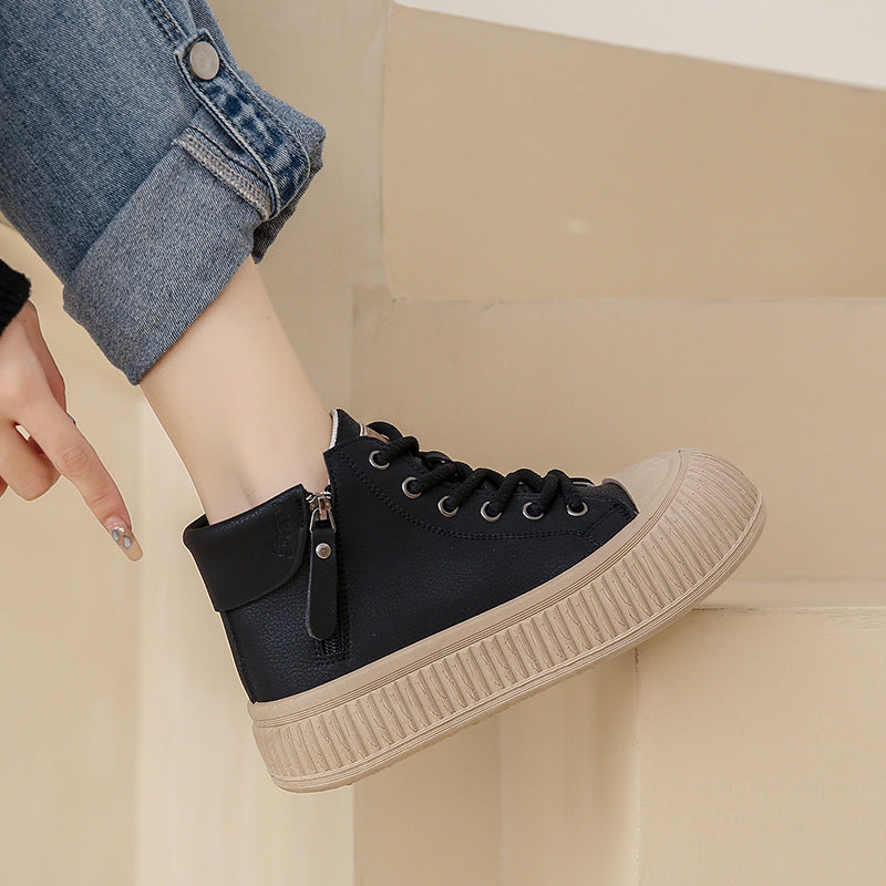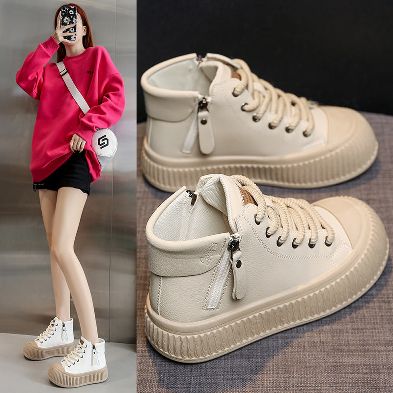 Women's Side Zipper White Shoes Casual Sports Skate Shoes
