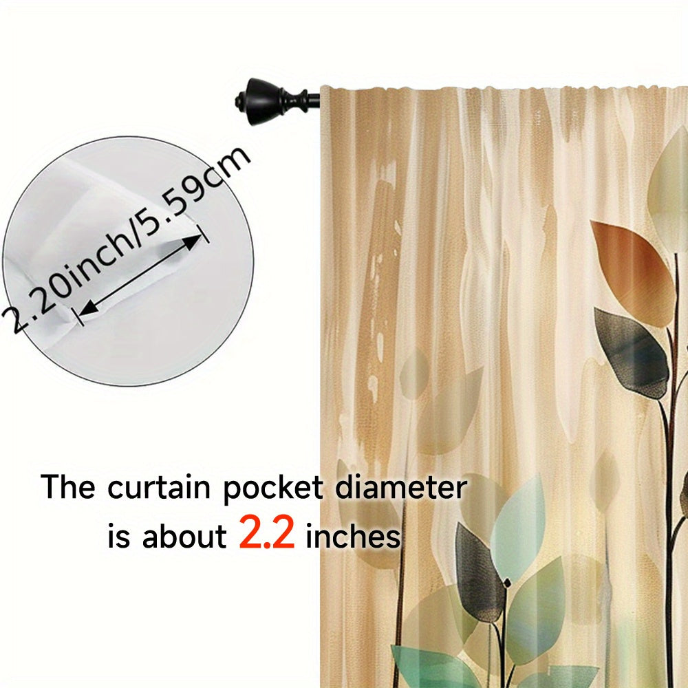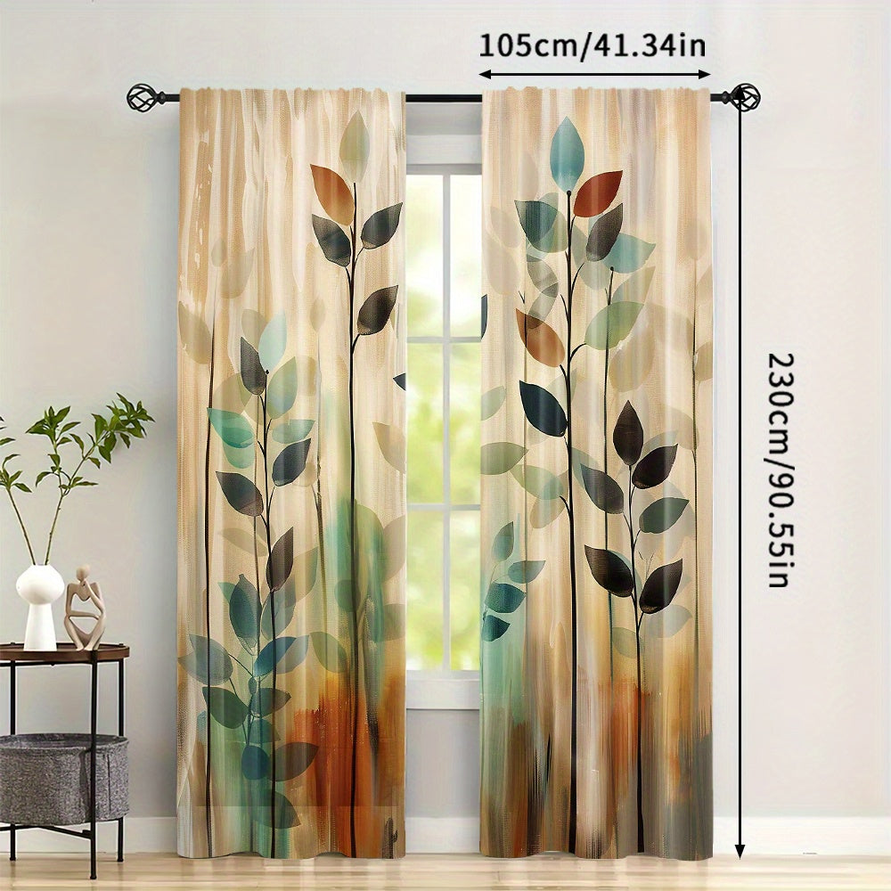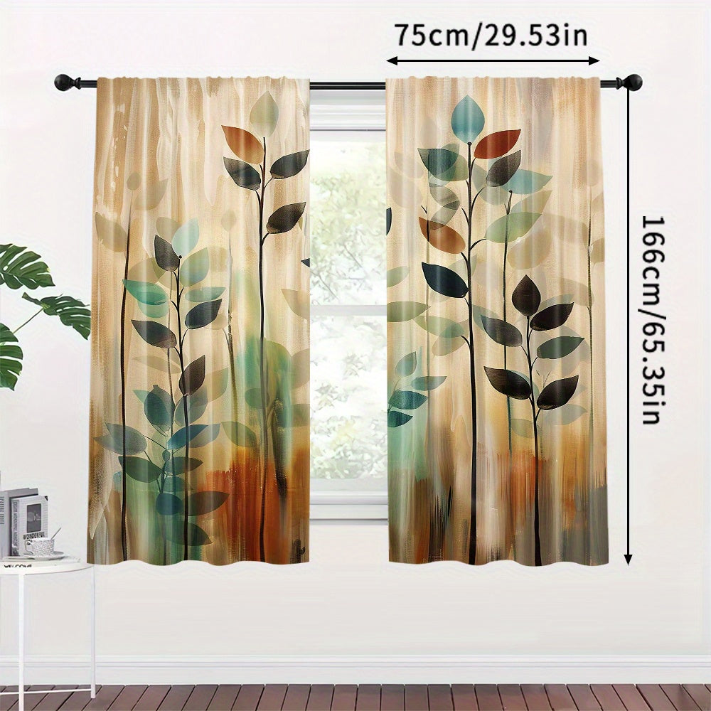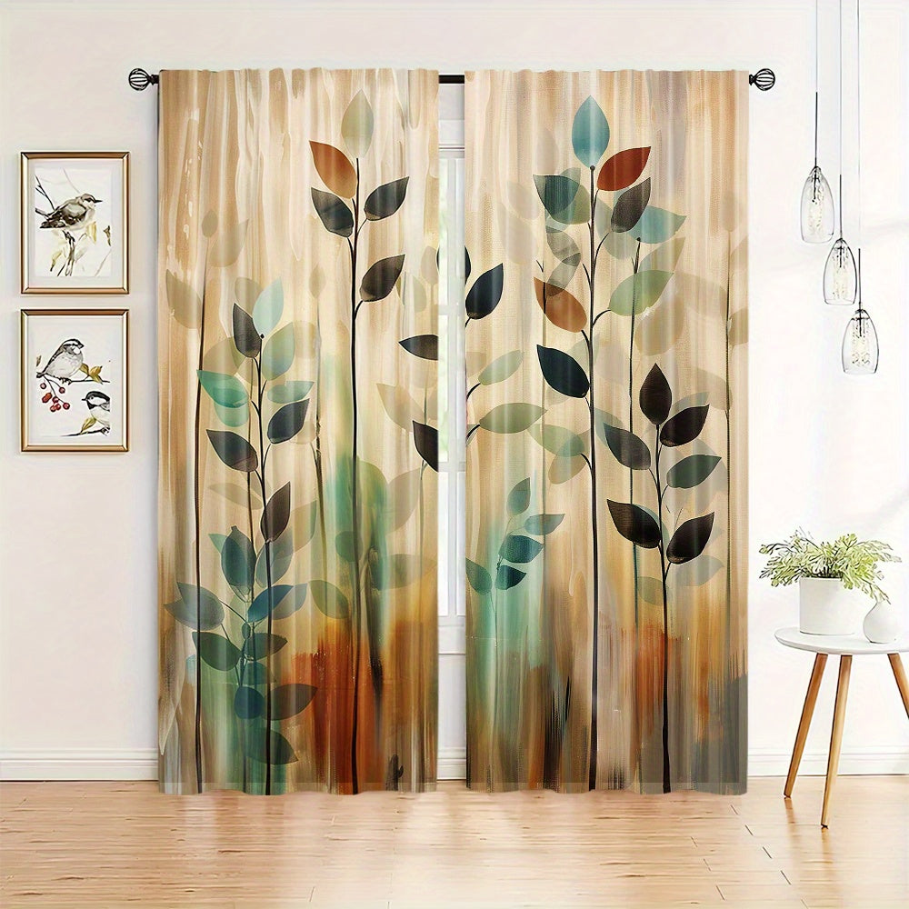 2-Piece Blackout Curtain Set with Artistic Leaf Print - Contemporary Polyester Woven Drapes for Bedroom, Living Room, Office - Rod Pocket Design, Machine Washable - Elegant Landscape-Themed Window Treatments