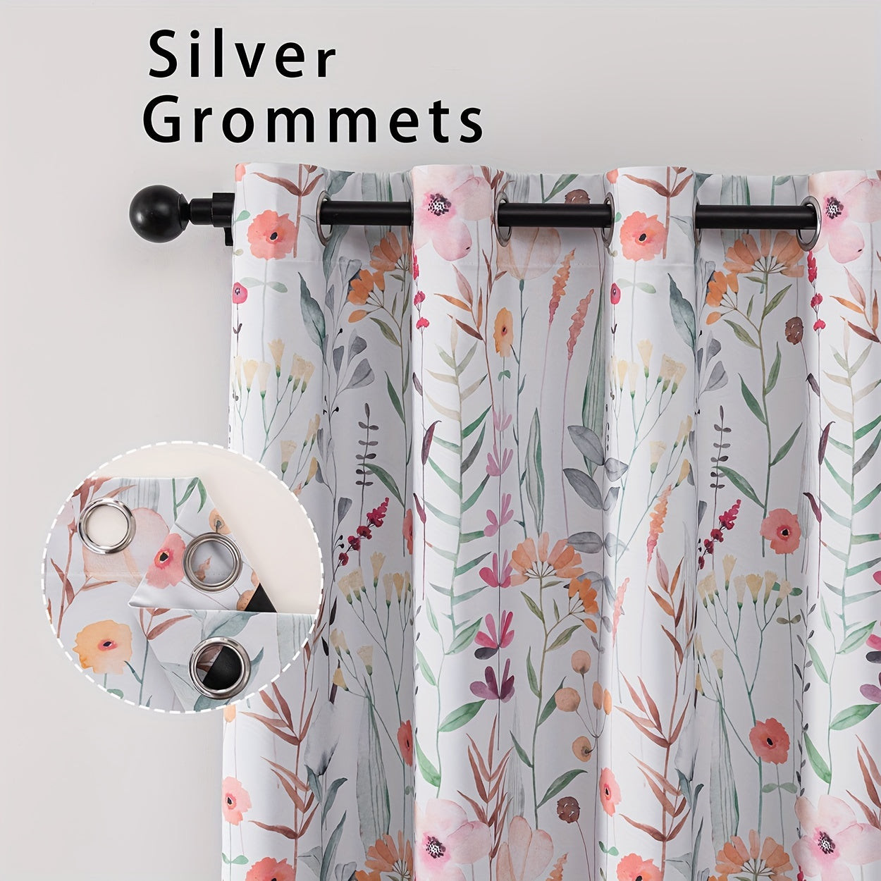 2Panels Flower 100%blackout Curtains, Romantic Pink Flower Print Curtains, Top Ring Hanging, Sunscreen Insulation Shading Thick Noise Reduction Film Coated Shading Curtains, Deep Sleep Curtains, For The Bedroom, Living Room, Home Decoration