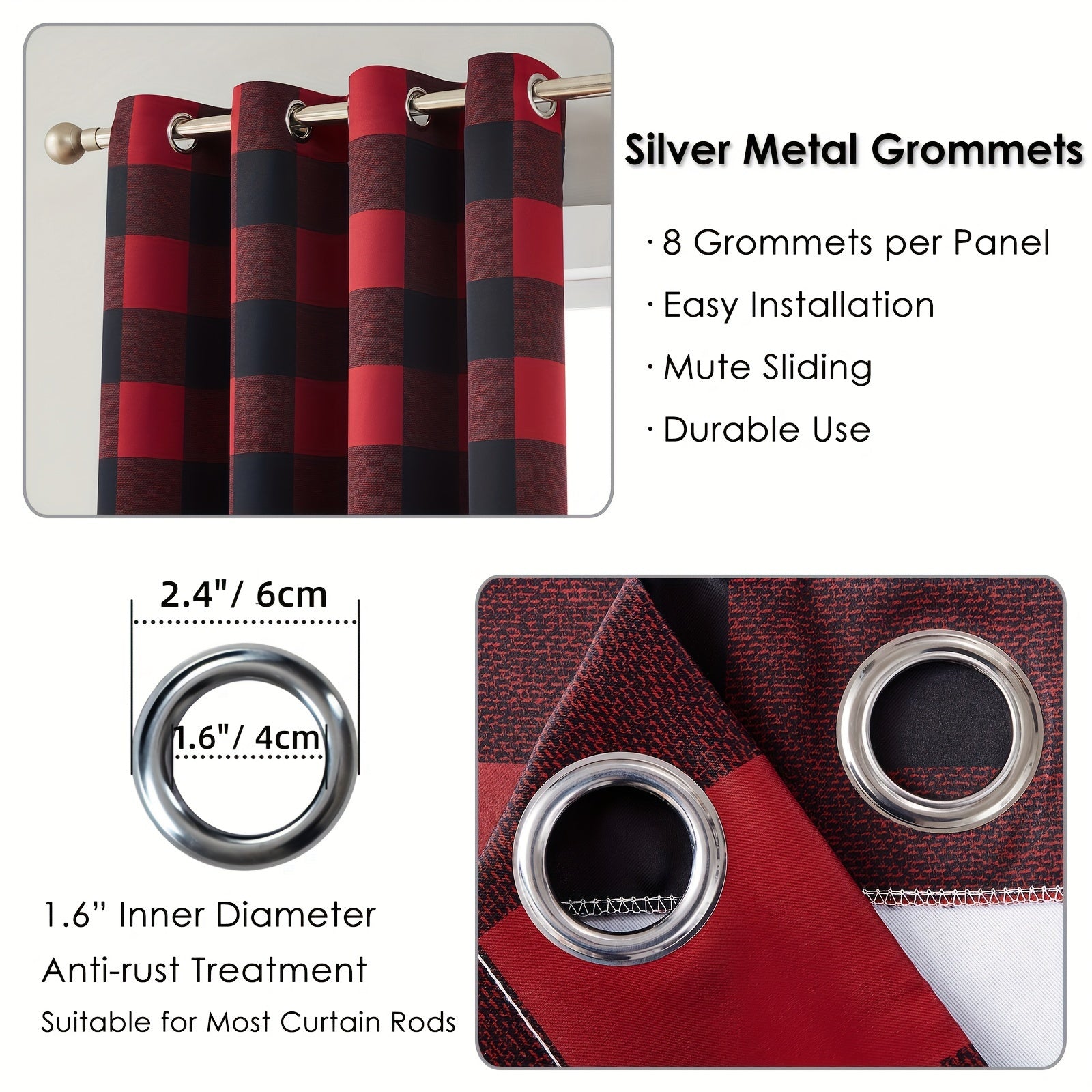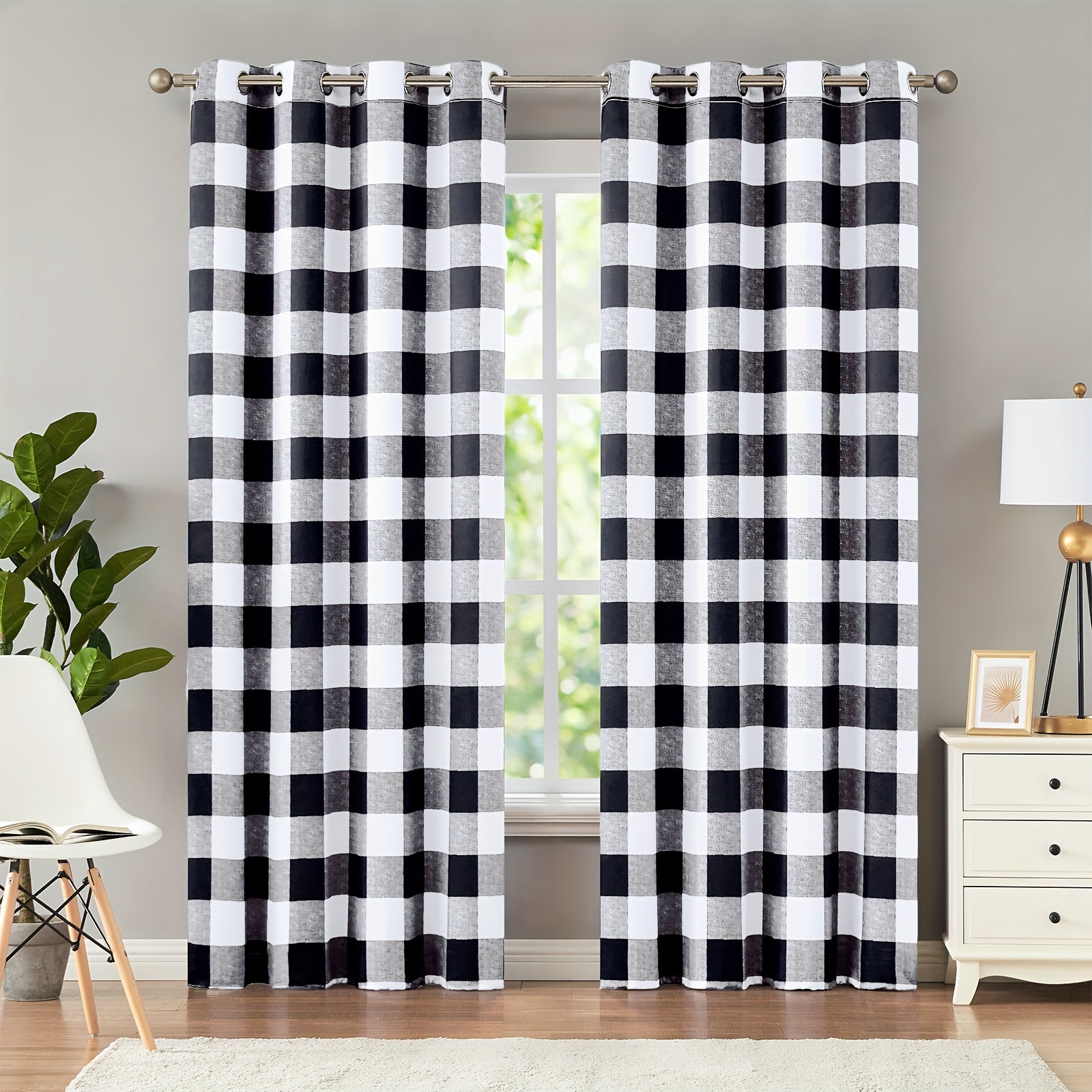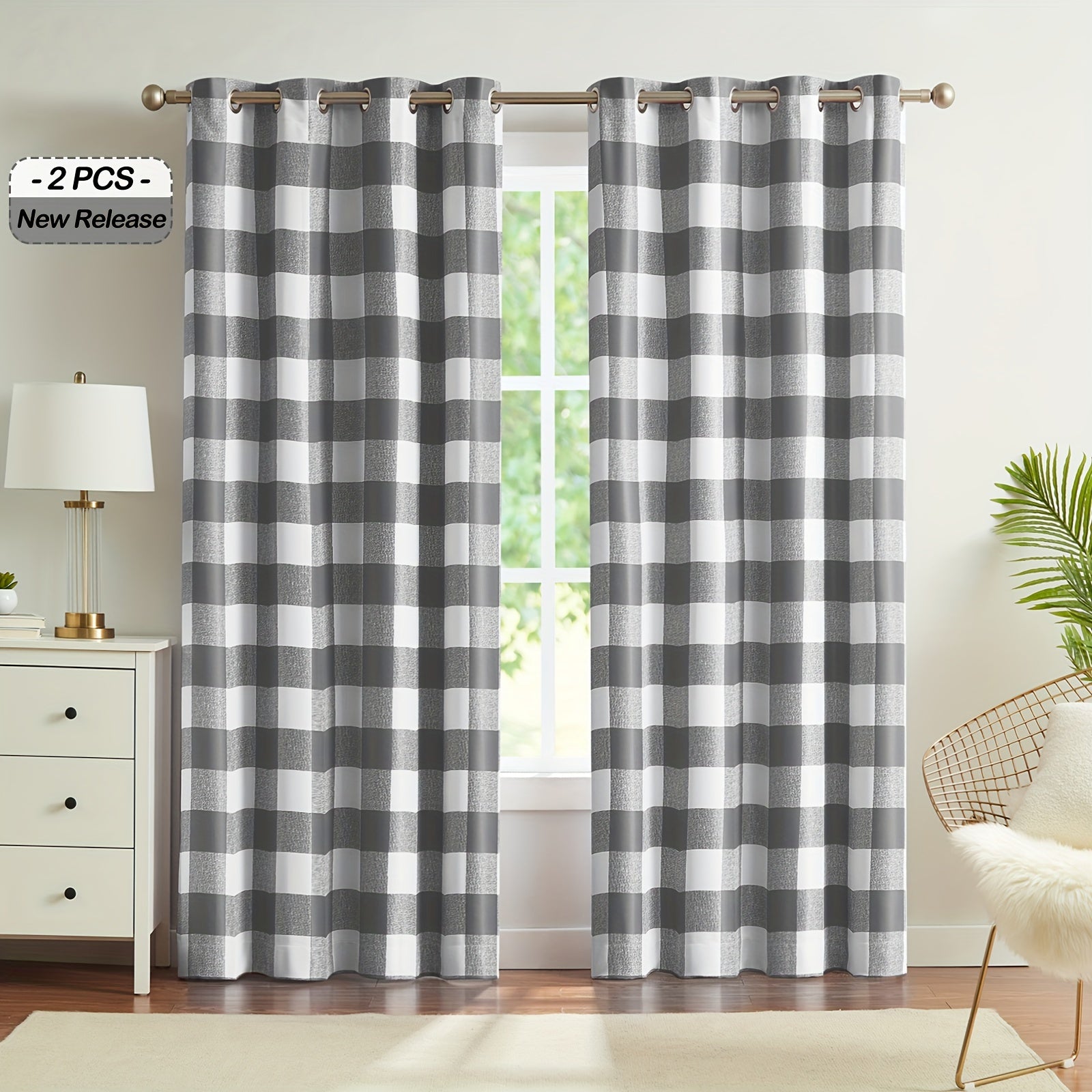 2pcs Buffalo Check Plaid Blackout Curtains for Bedroom, Living Room Thermal Insulated Room Darkening Noise Reducing Grommet Drapes
