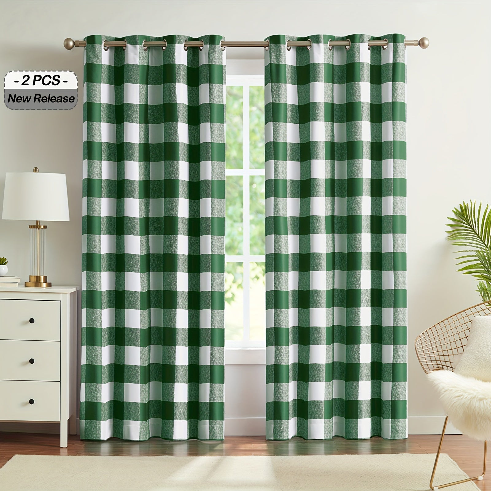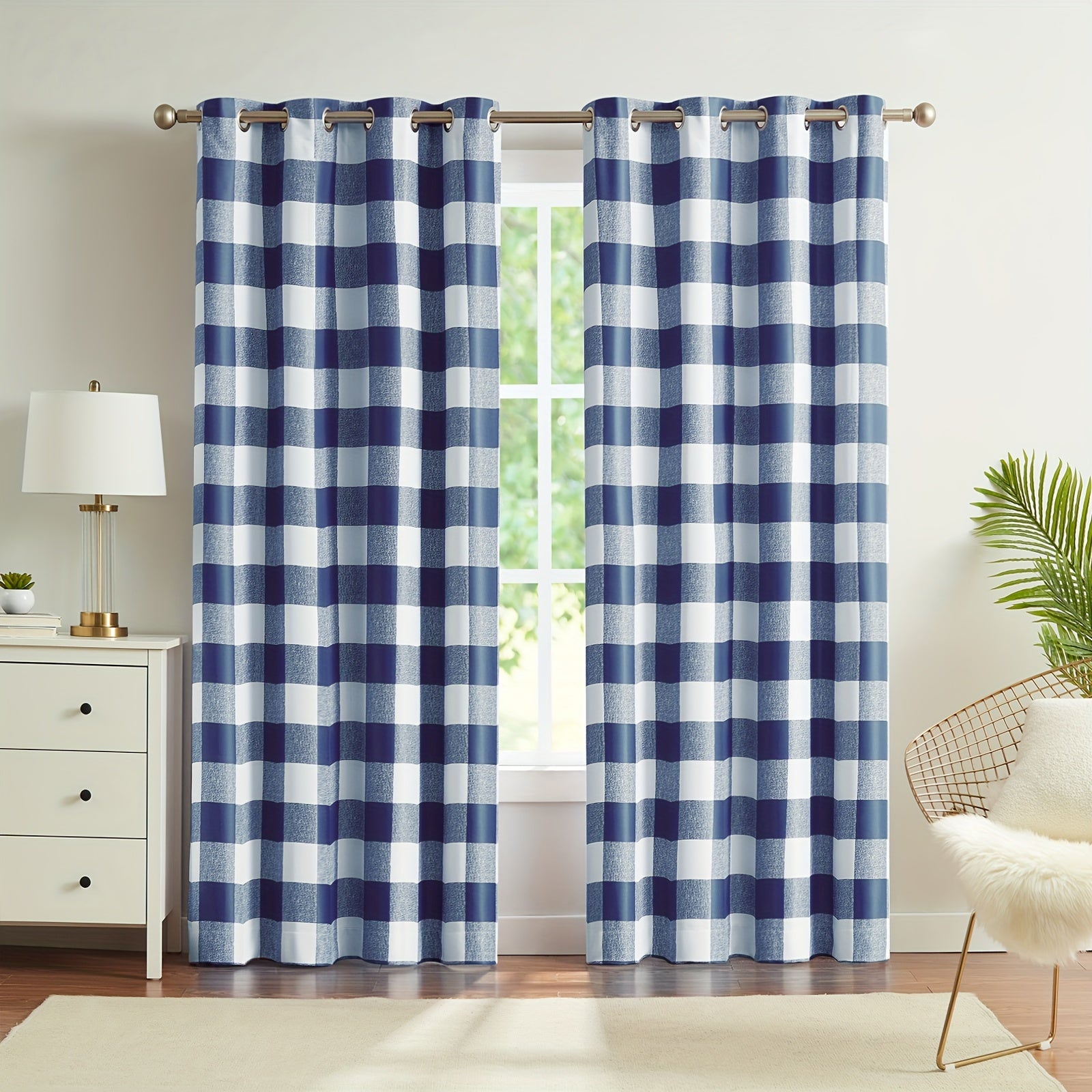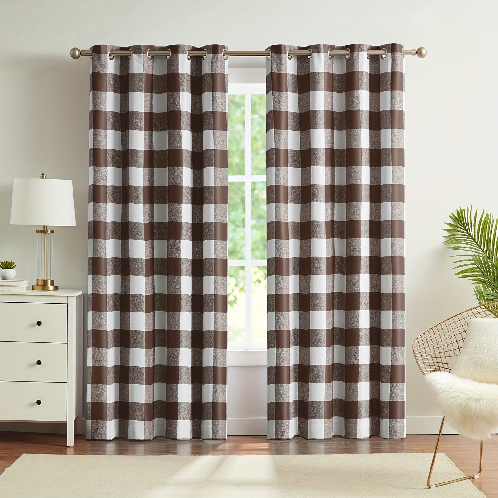 2pcs Buffalo Check Plaid Blackout Curtains for Bedroom, Living Room Thermal Insulated Room Darkening Noise Reducing Grommet Drapes