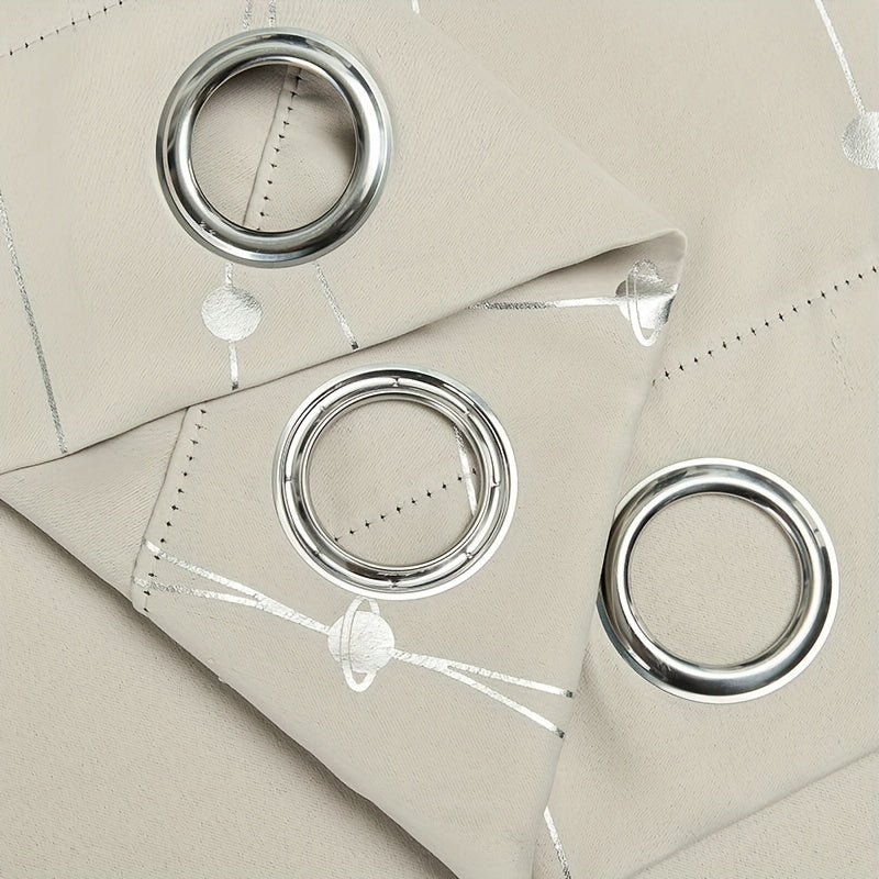 2pcs Planet Gold Curtain, Darkening And Thickening The Room Heat Insulation Shading, Grommet Perforated Curtain Fabric, Suitable For Living Room, Dining Room, Bedroom, Kitchen, Dining Room, Office, Birthday Party Holiday Layout.